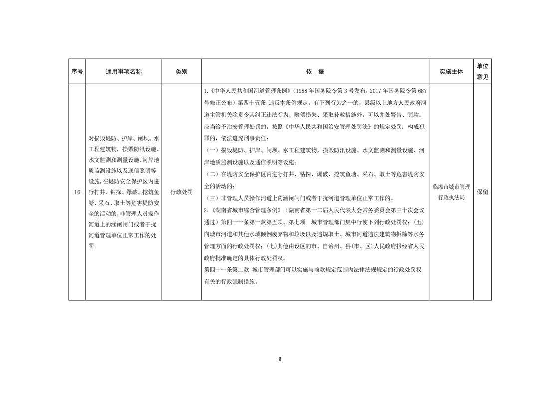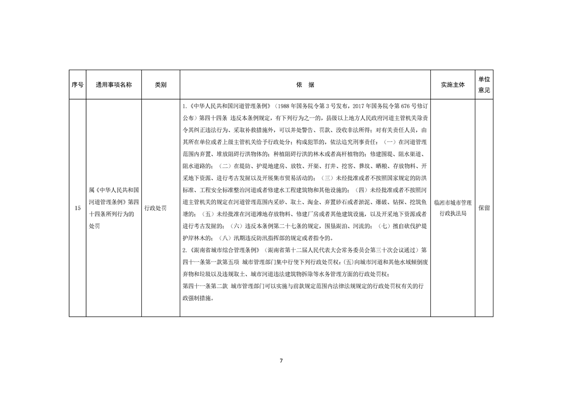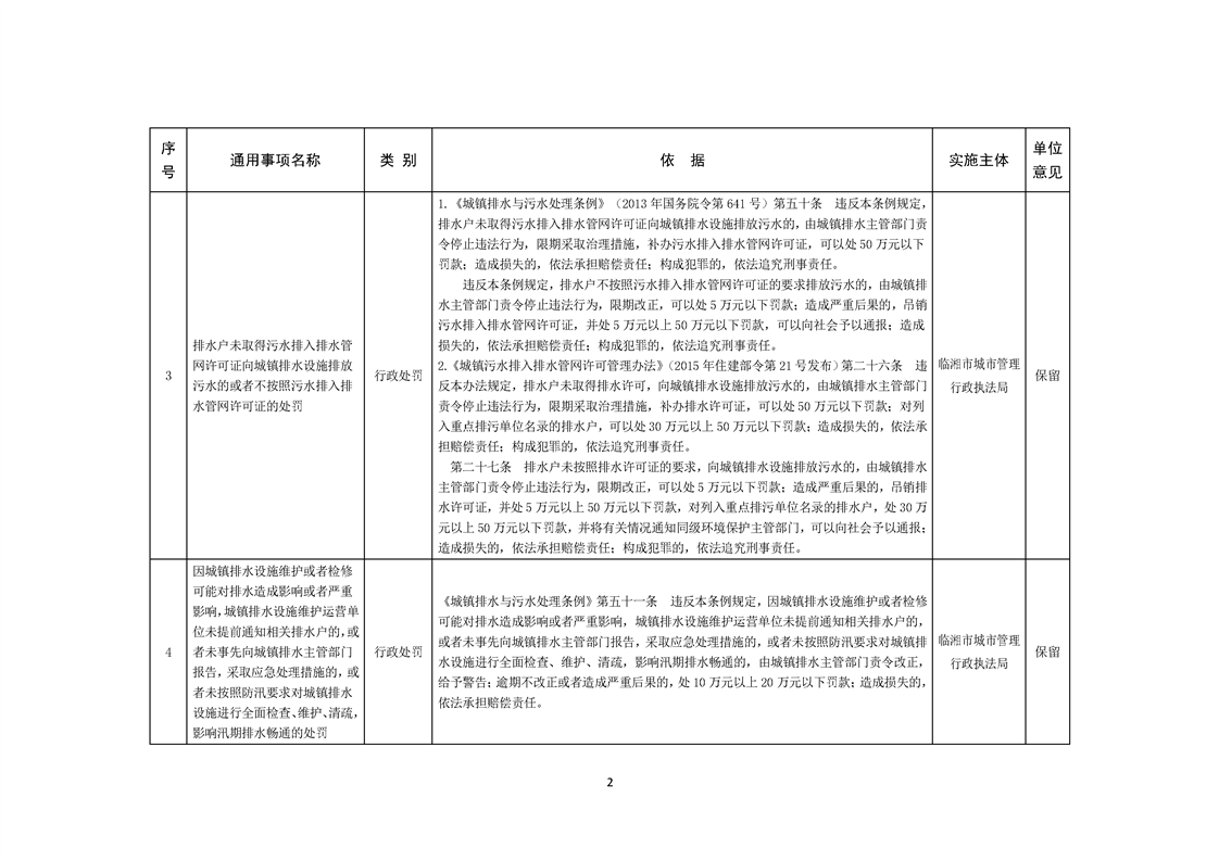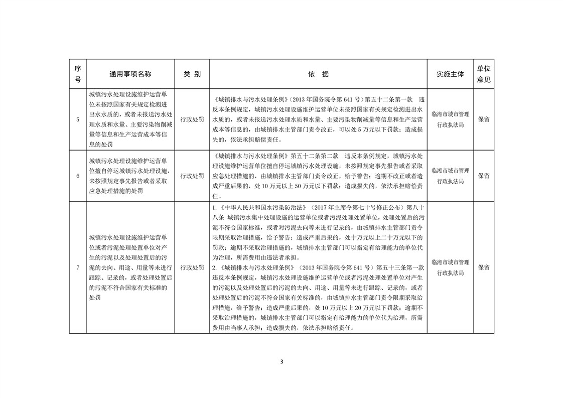 临湘市城市管理行政执法局行政权力事项—行政处罚(城镇排水、城市水体类)