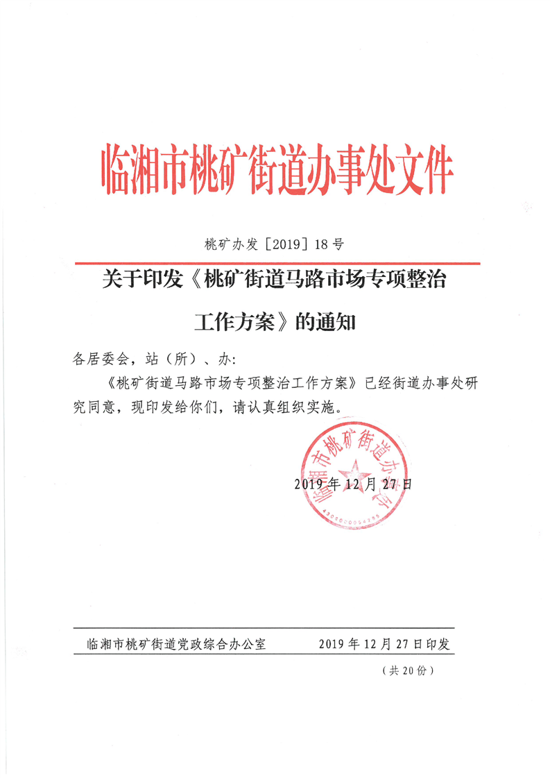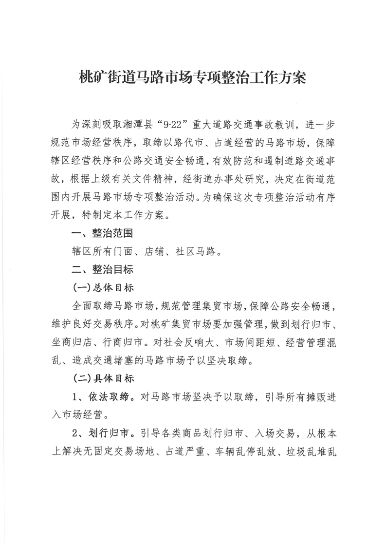 2019年桃矿街道马路市场专项整治工作方案