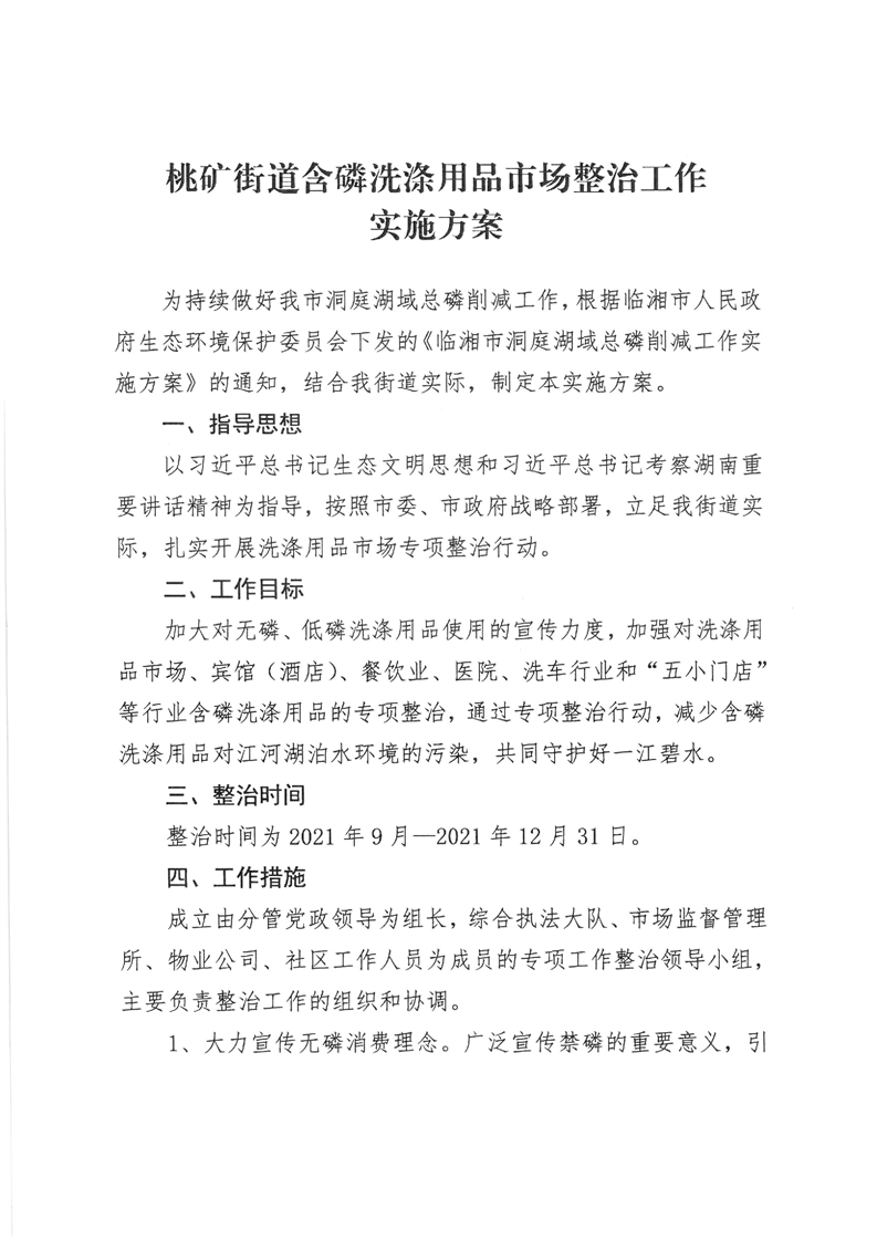 2021年桃矿街道含磷洗涤用品市场整治工作实施方案