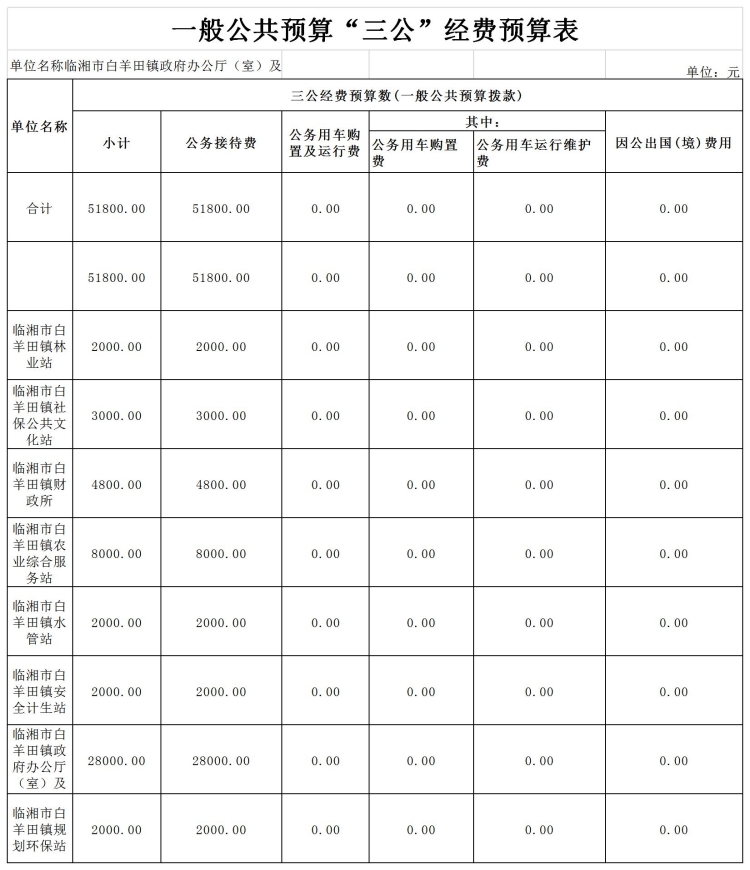 2020年白羊田镇人民政府收支预算及“三公”经费预算公示
