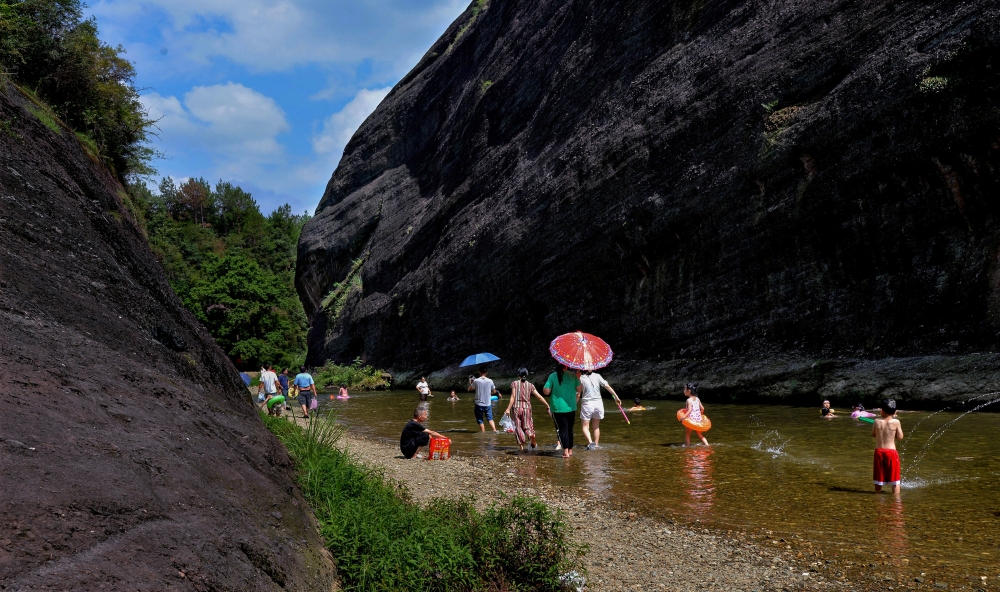大石坳坐落于响山村大石组,距响山生态园0.5公里。贯穿其中的响山河全长4.5公里,上接药菇山,下连游港河,为零污染河港流域。近年来,因其独特的丹霞地貌,丰富的溯溪戏水体验,声名远播。加之多方群体通过微信、抖音等方式的自发推广,逐渐成为了岳阳当地的网红打卡地。每年5月至10月,有大量的外地游客前来戏水、烧烤、溯溪游玩,每日接待人数日均达1000人次以上。