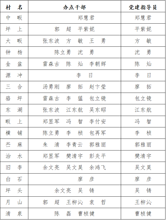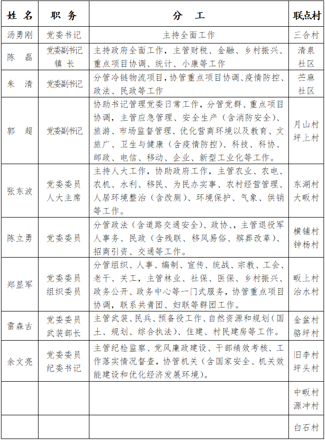 桃林镇2023年党政领导分工及各村(社区)办点情况