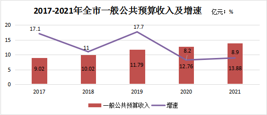 全年一般公共预算收入13.88亿元,增长8.9%;一般公共预算地方收入8.17亿元,增长8.3%;一般公共预算地方税收收入5.93亿元,增长10.5%。
