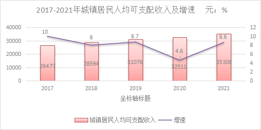 全年城镇居民人均可支配收入35308元,增长8.6%;农村居民人均可支配收入20698元,增长10.9%。城镇居民人均消费支出25800元,增长6.1%;农村居民人均消费支出15879元,增长13.0%。