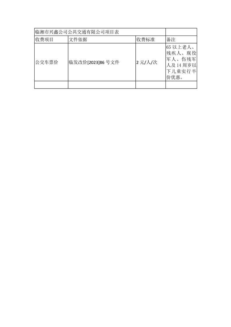 临湘市兴鑫公司公共交通有限公司项目表