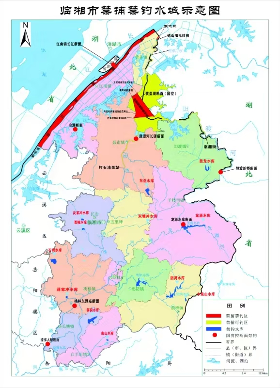 4.生态保护要求:基于长江临湘段国家级白鳍豚保护区、黄盖湖省级湿地保护区和县级中华鲟、胭脂鱼水生生物保护区的生态保护需求,制定了相应的禁钓规定。