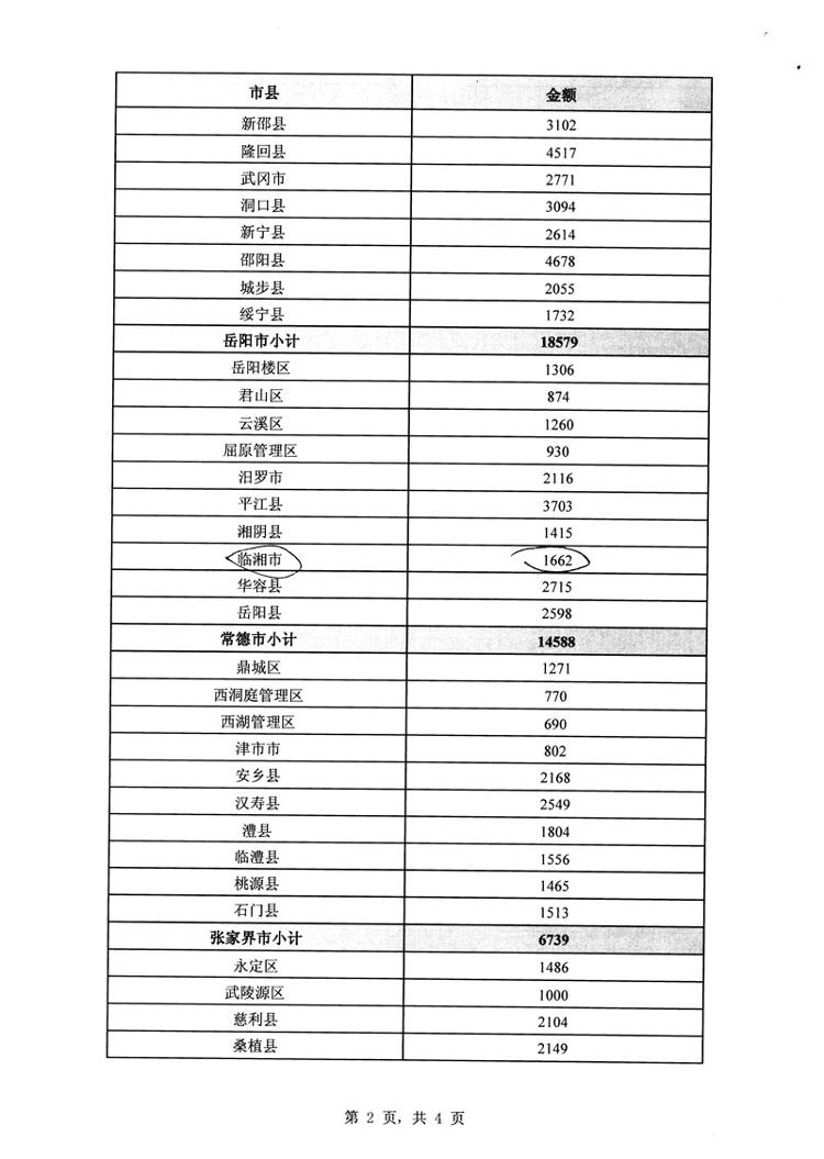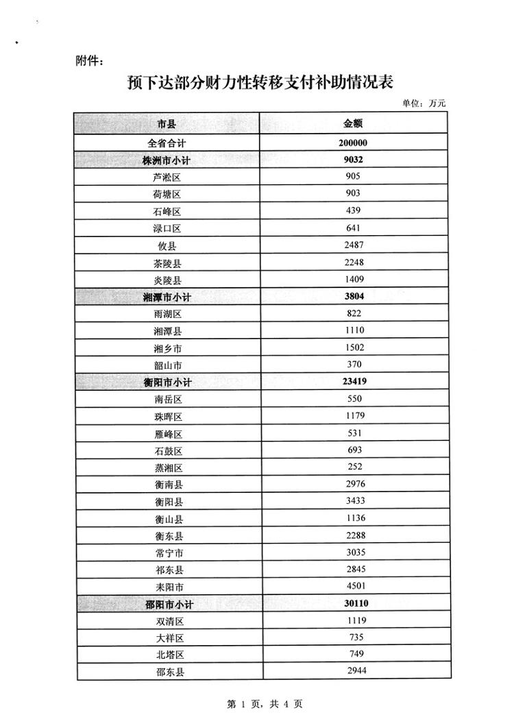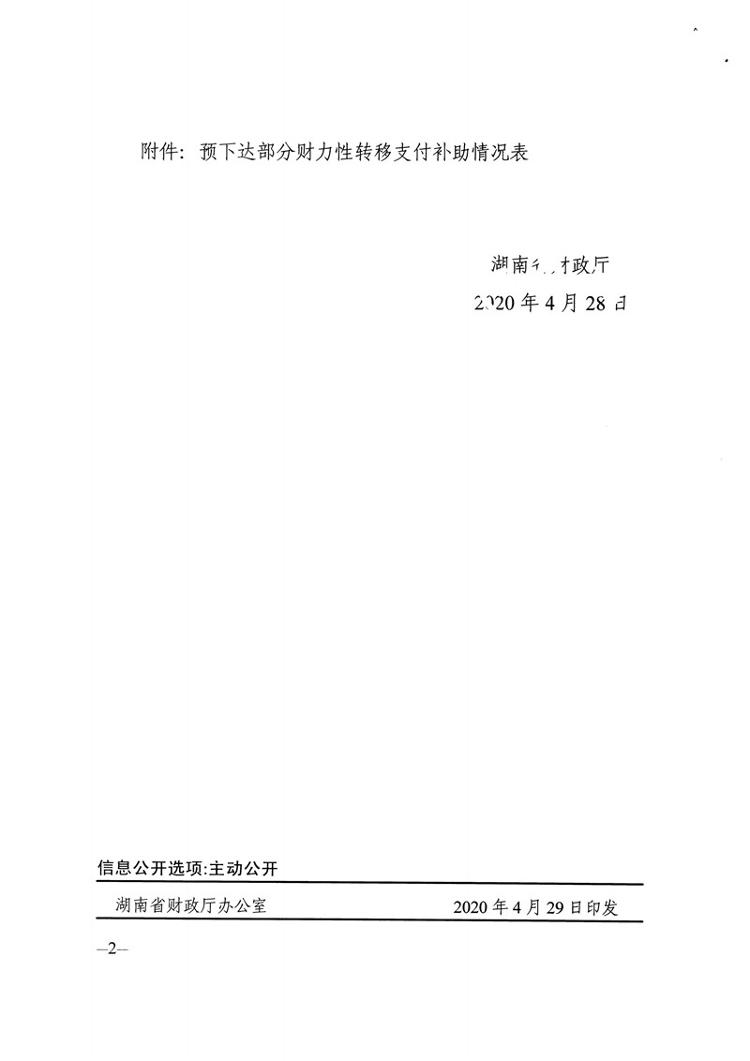 湖南省财政厅关于下达部分财力性转移支付补助的通知