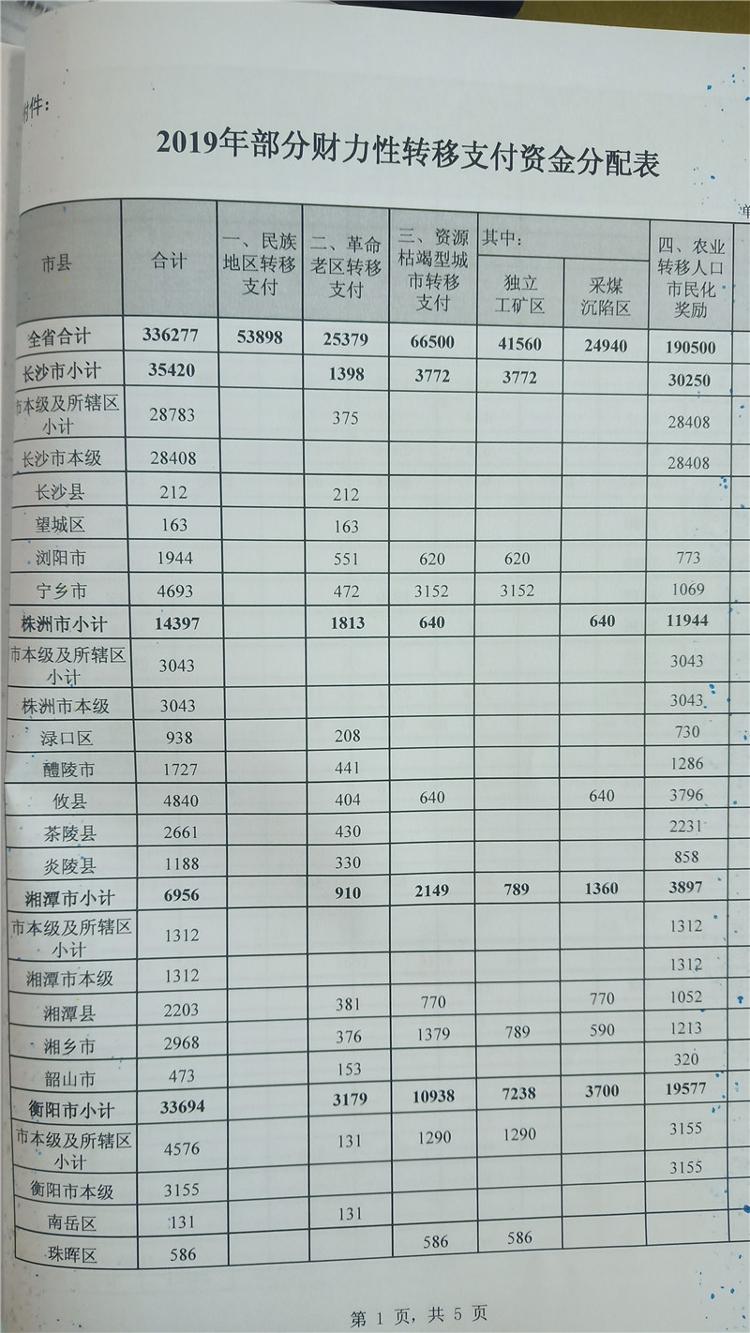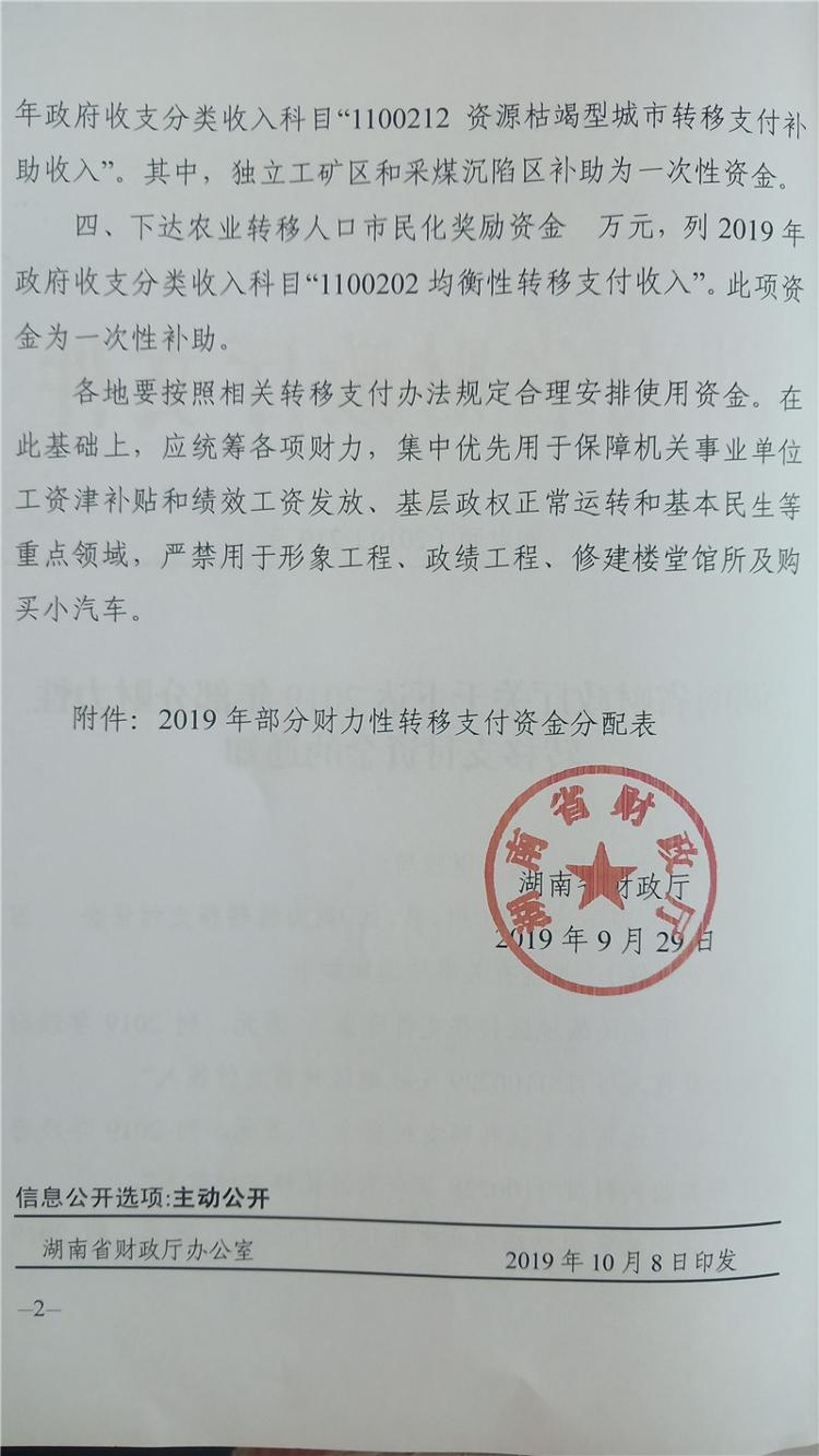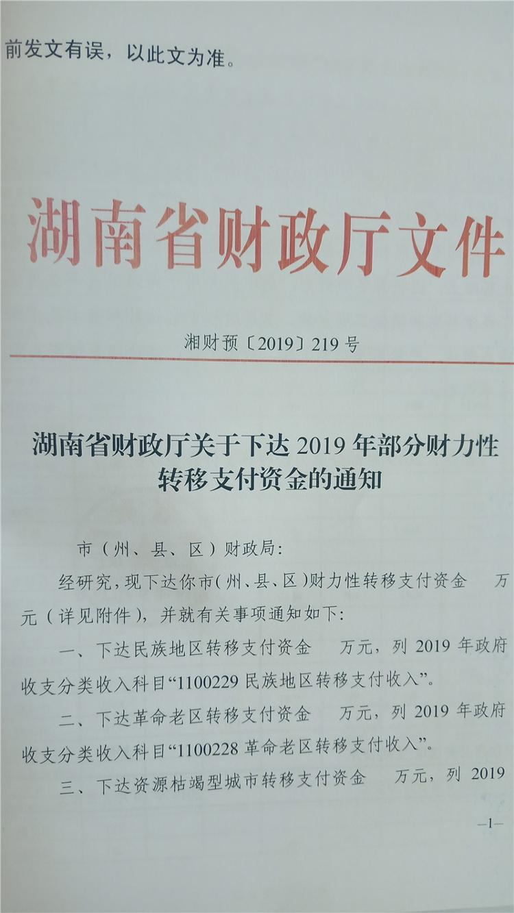 湖南省财政厅关于下达2019年部分财力性转移支付资金的通知