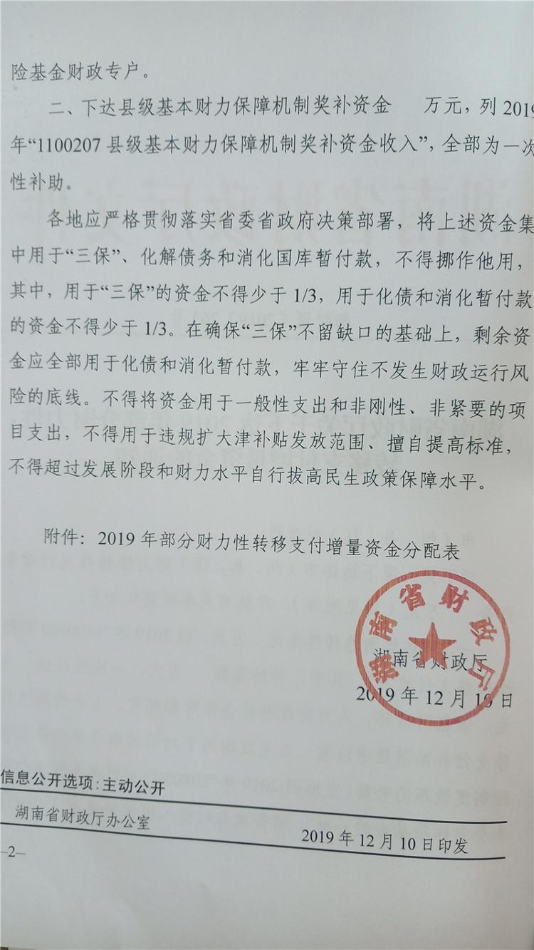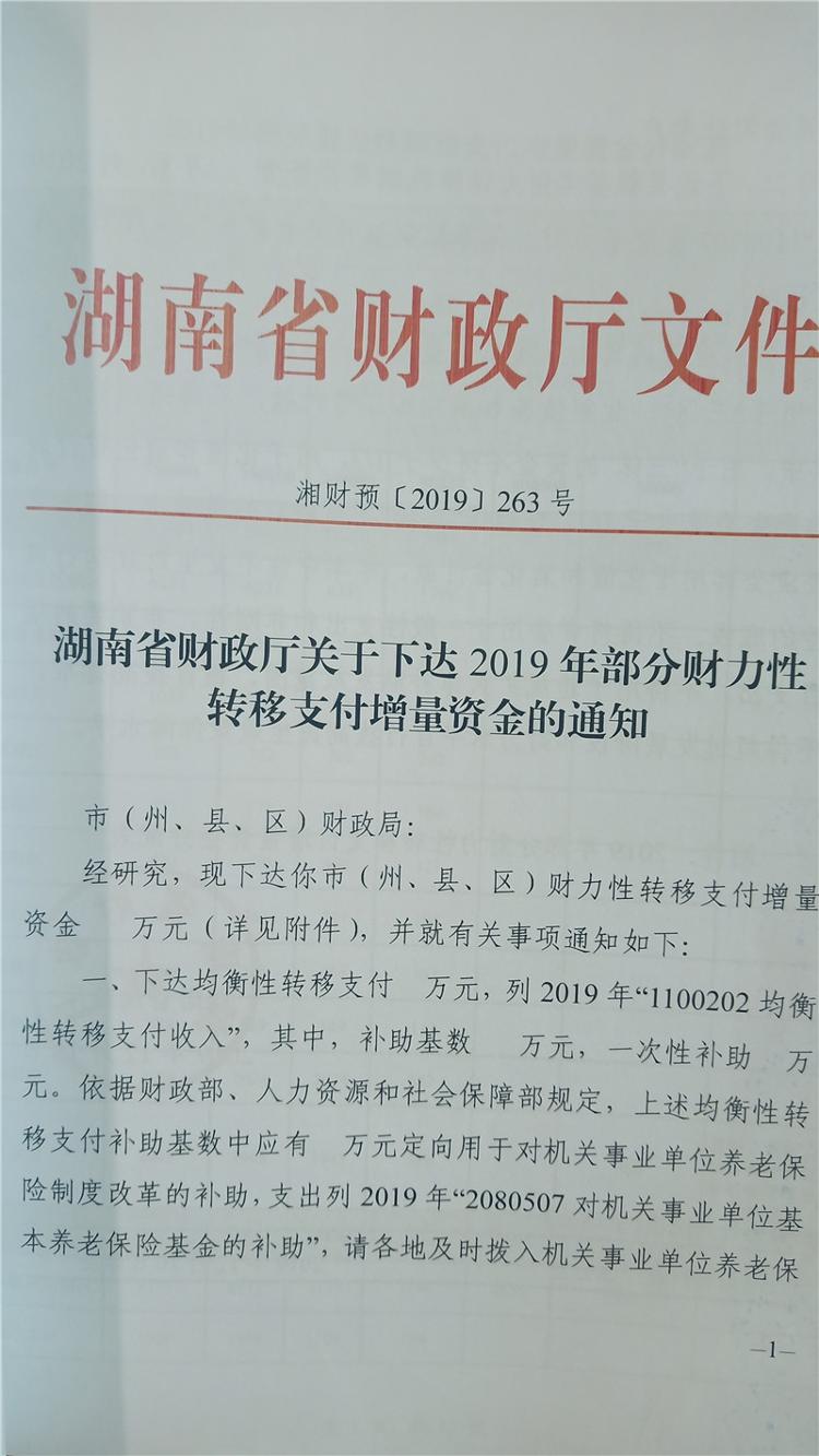 湖南省财政厅关于下达2019年部分财力性转移支付增量资金的通知