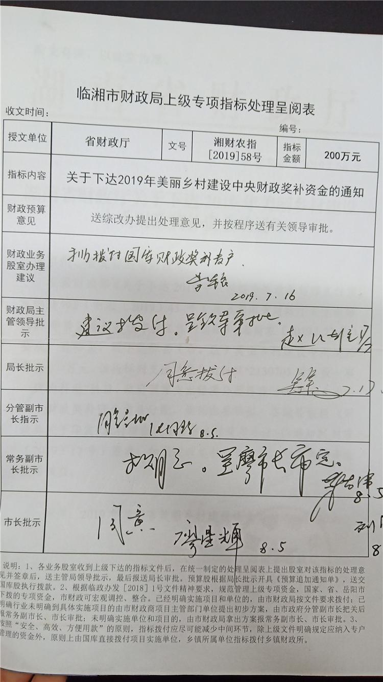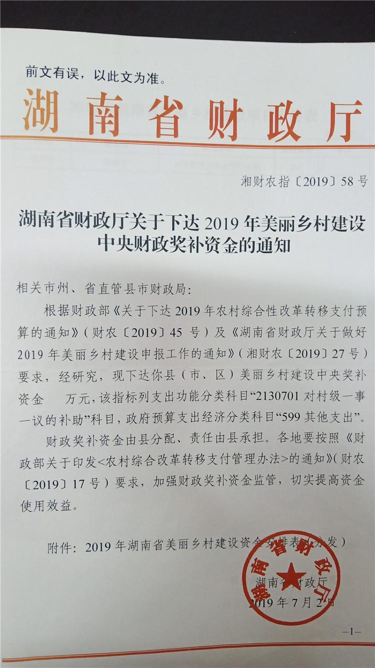 湖南省财政厅关于下达2019年美丽乡村建设中央财政奖补资金的通知