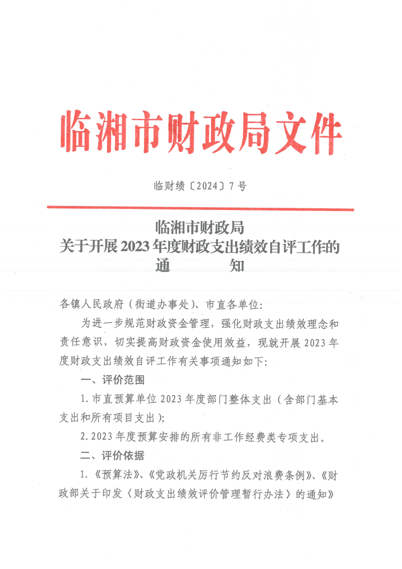 临湘市财政局关于开展2023年度财政支出绩效自评工作的通知
