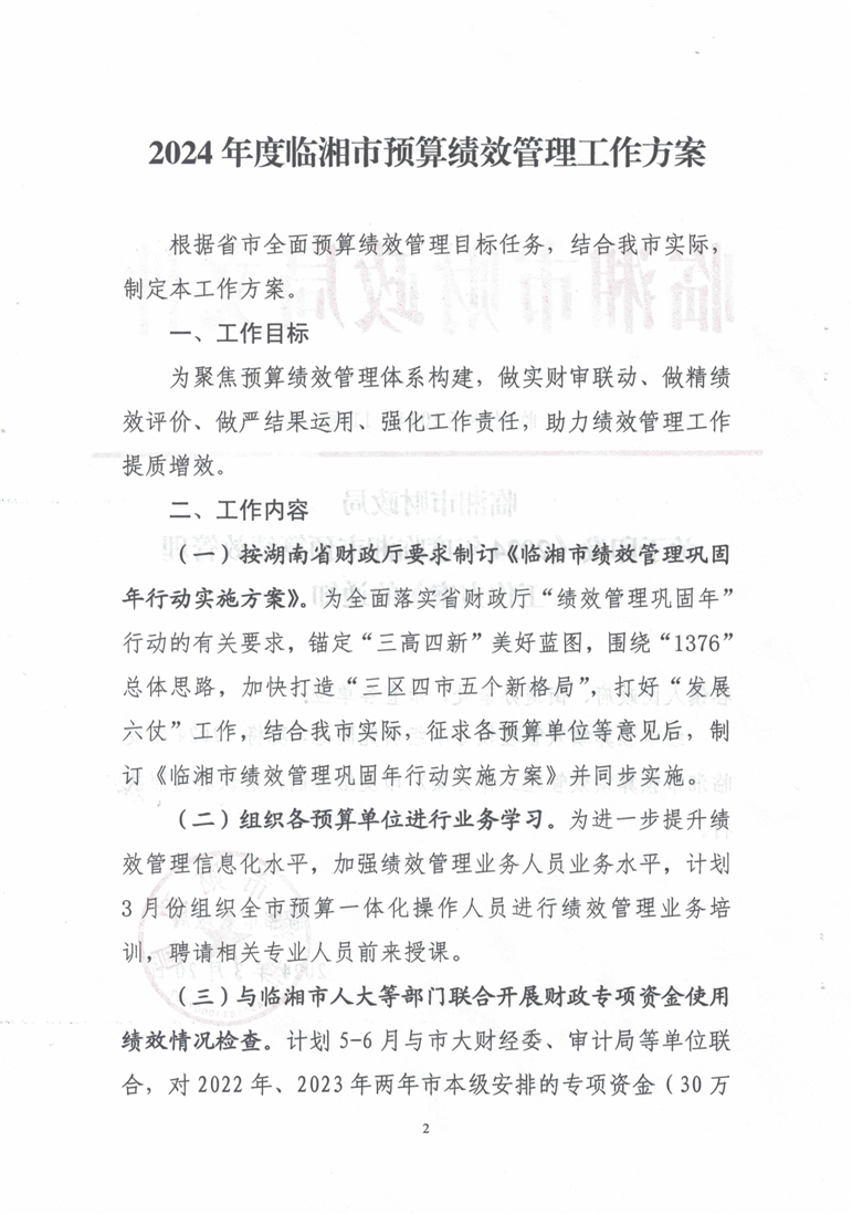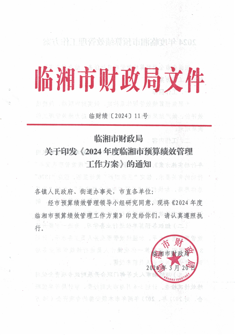 临湘市财政局关于印发《2024年度临湘市预算绩效管理工作方案》的通知
