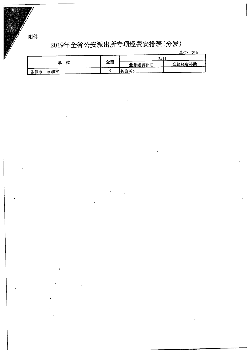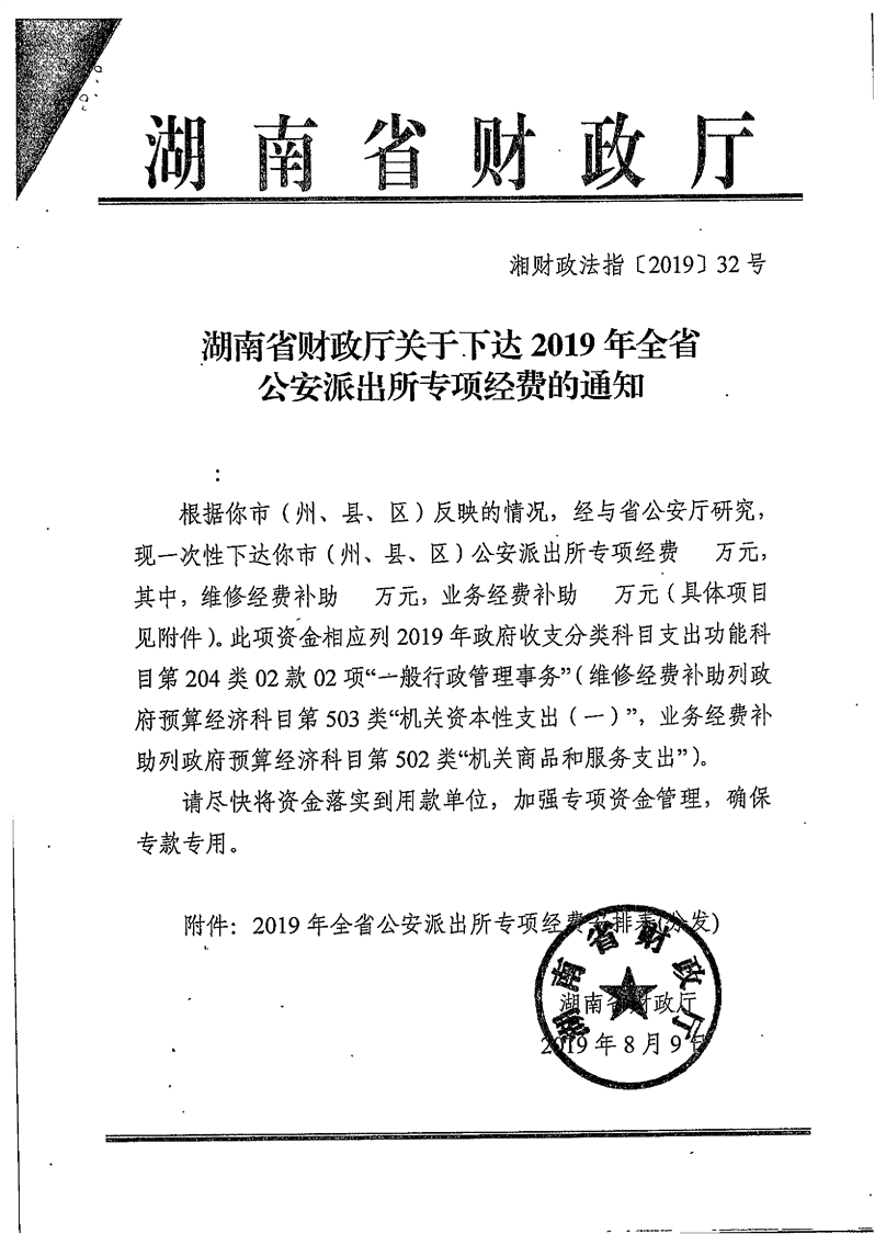 湖南省财政厅关于下达2019年全省公安派出所专项经费的通知