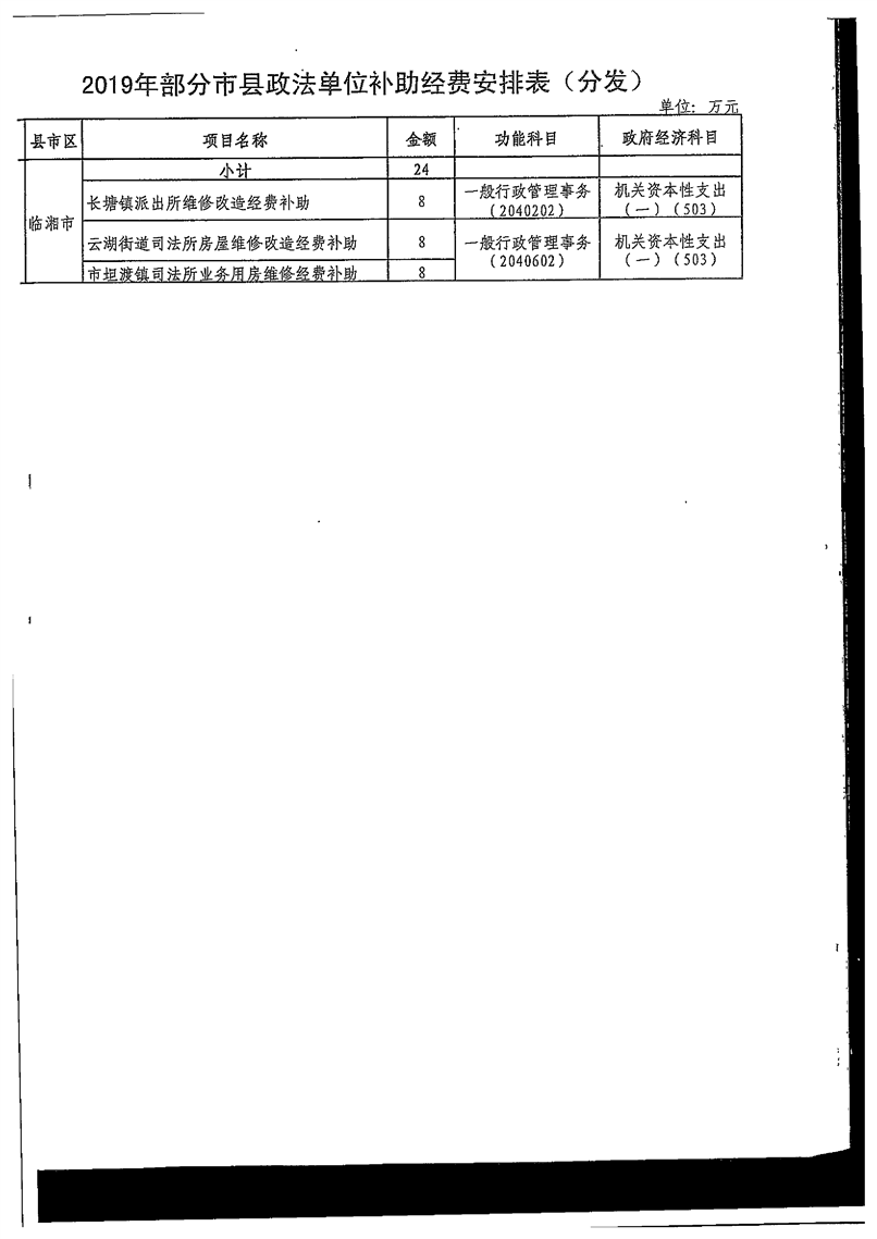 湖南省财政厅关于下达2019年部分市县政法单位补助经费的通知