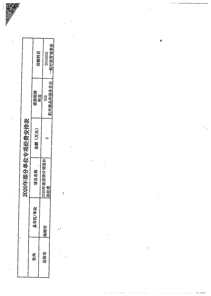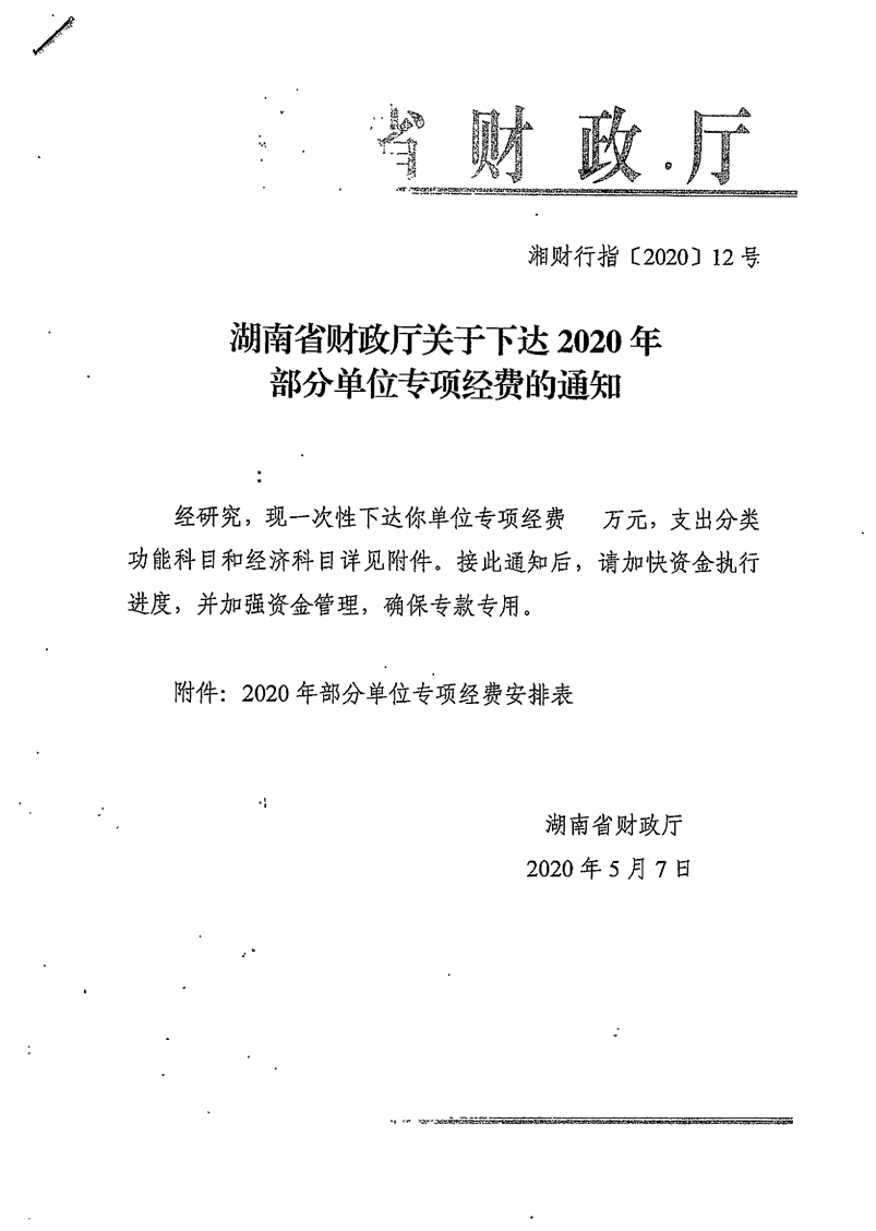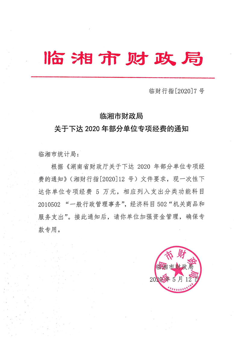 临湘市财政局关于下达2020年部分单位专项经费的通知