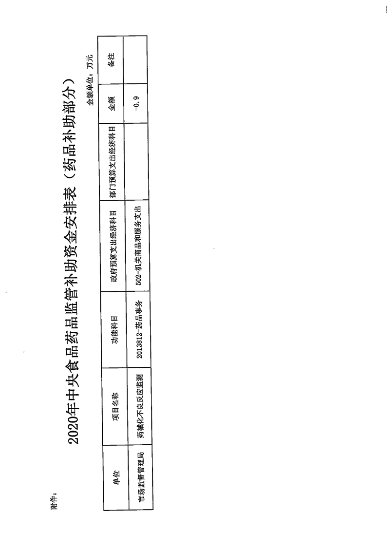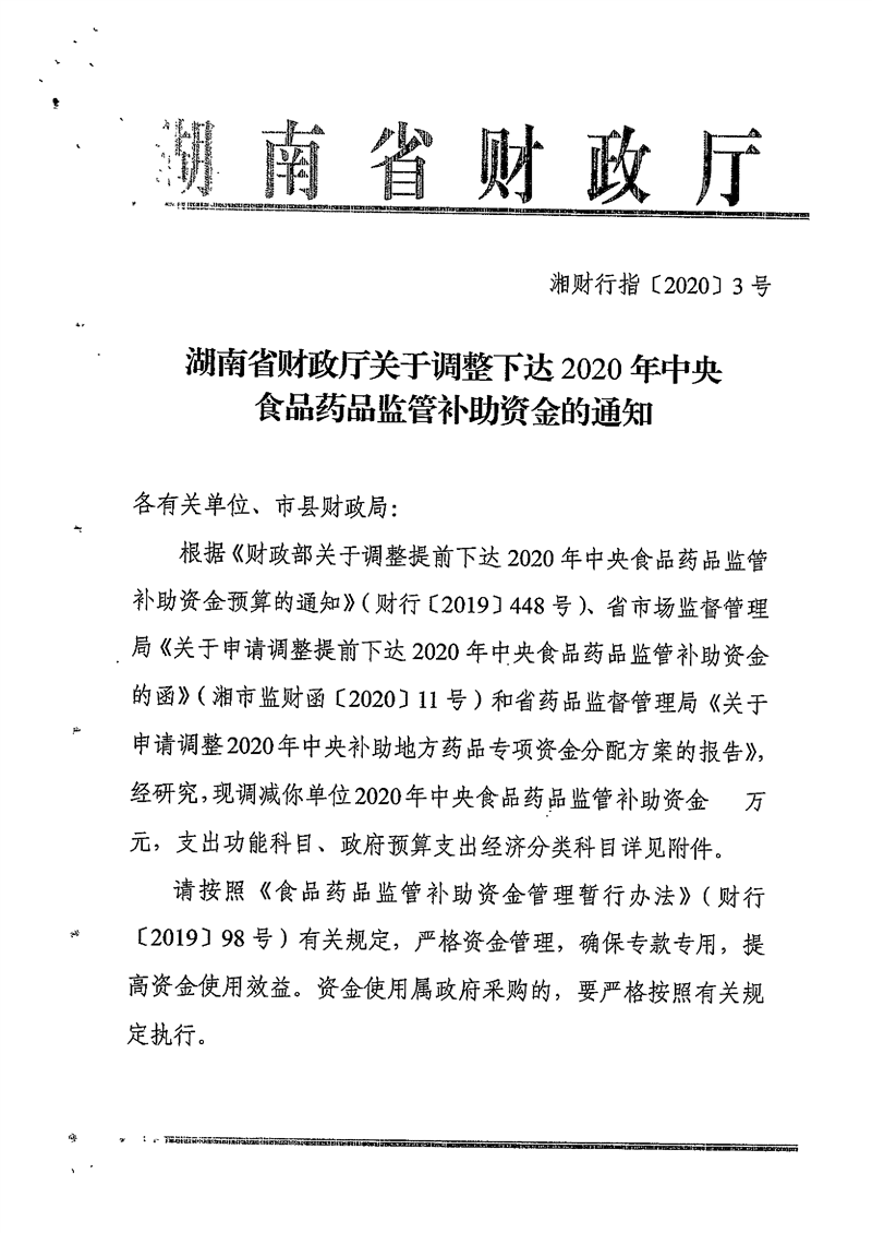 关于调整下达2020年中央食品药品监管补助资金的通知