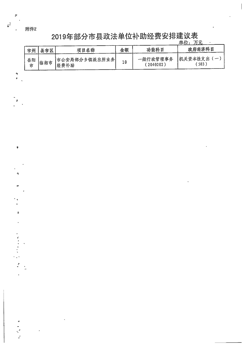关于部分市县政法单位补助经费的通知