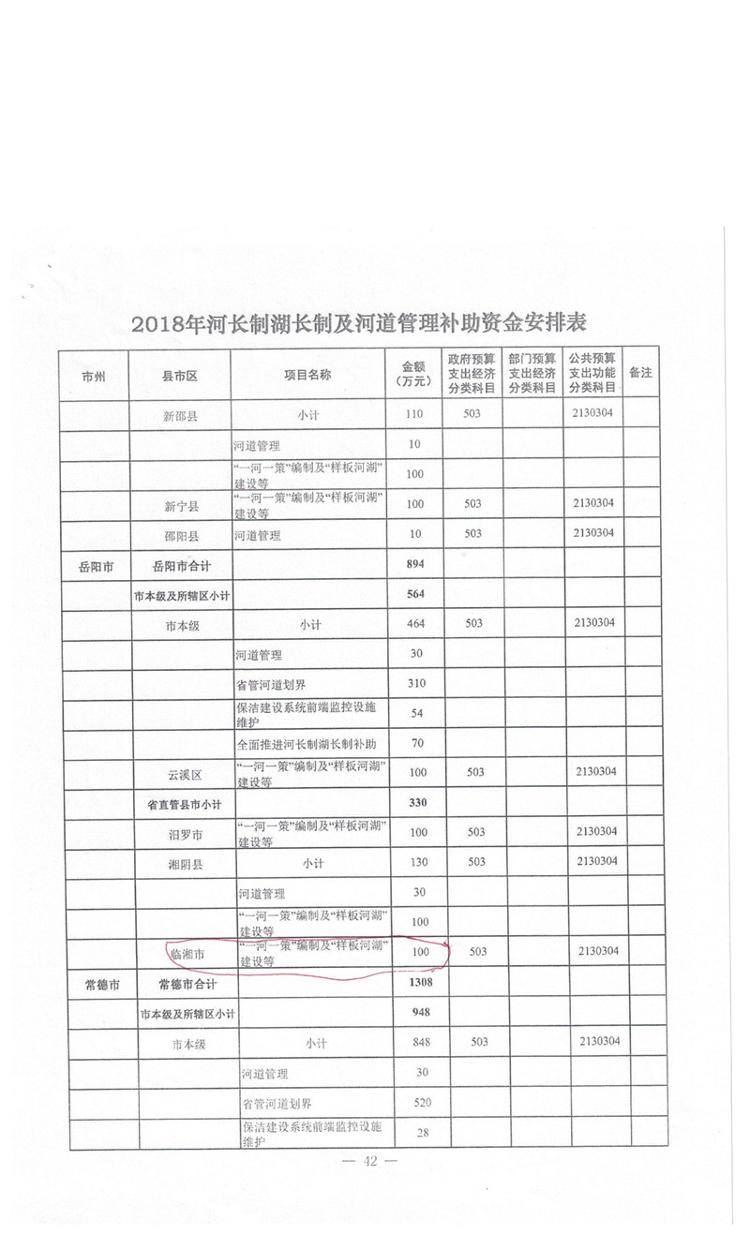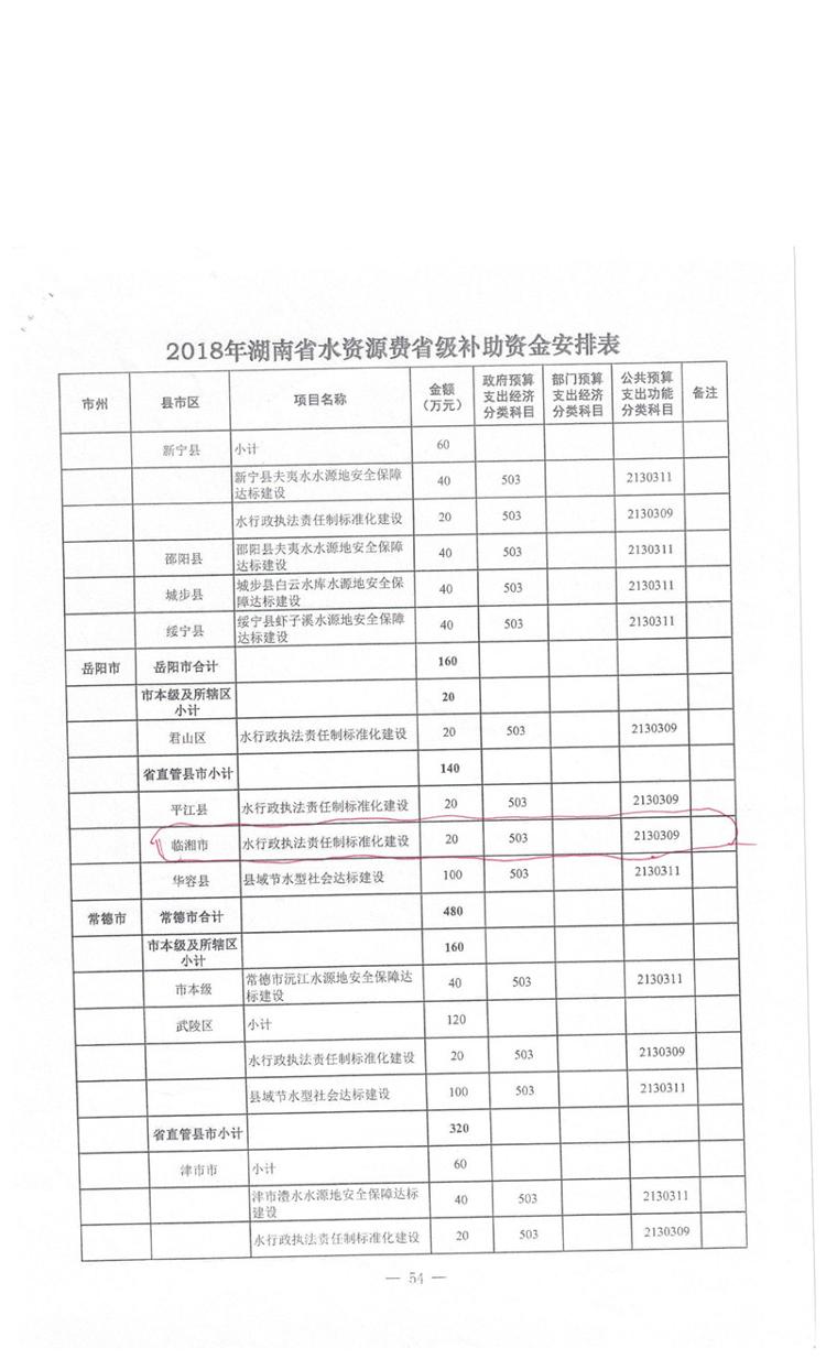 湖南省财政厅关于下达2018年长江河势控制等工程省级新增水利预算资金的通知