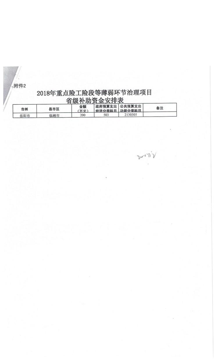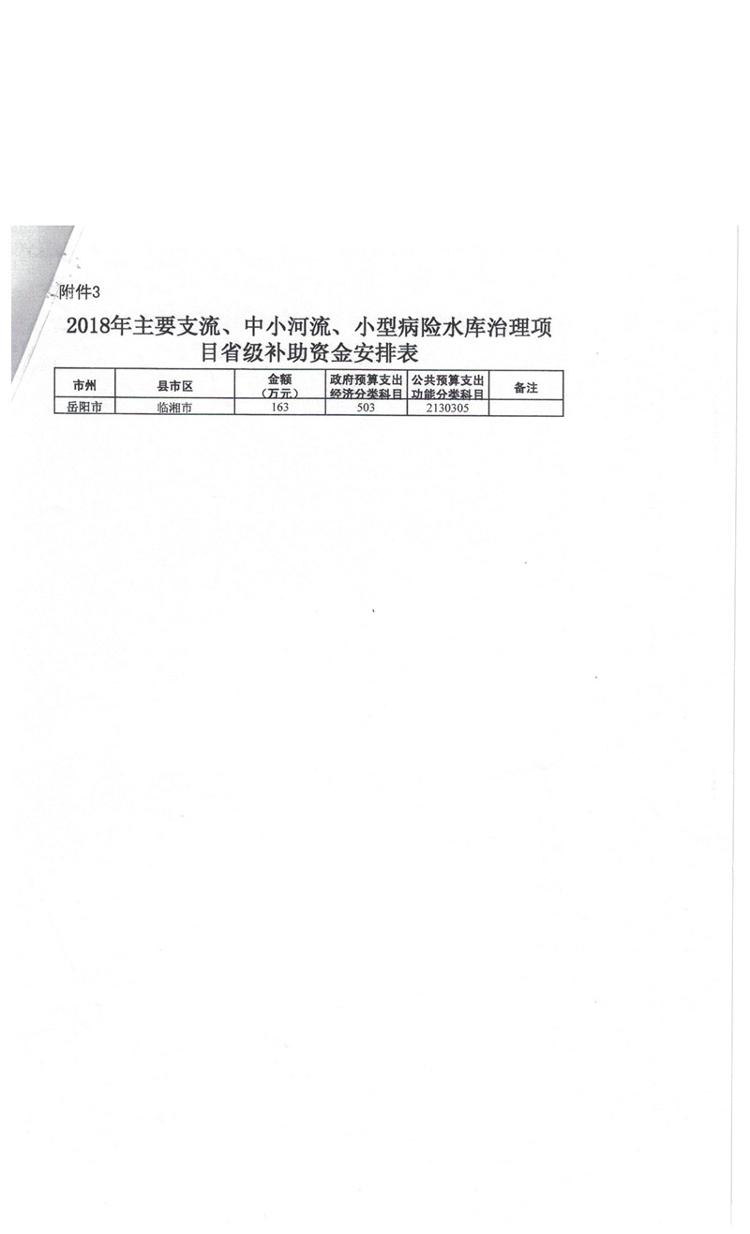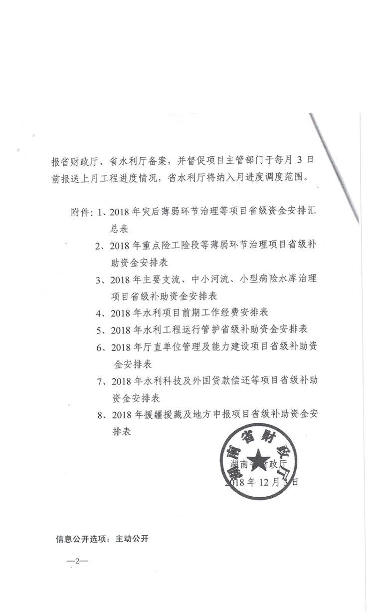 湖南省财政厅关于下达2018年灾后薄弱环节治理项目等新增水利预算资金的通知