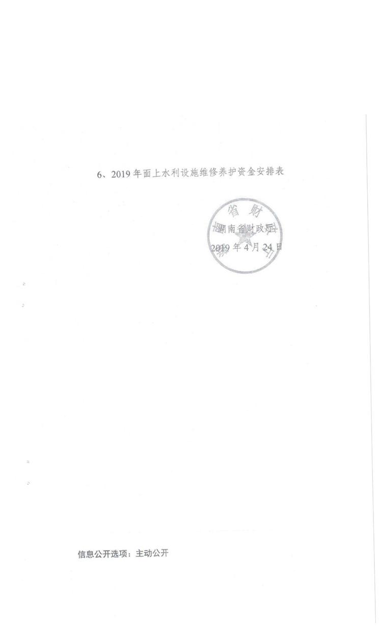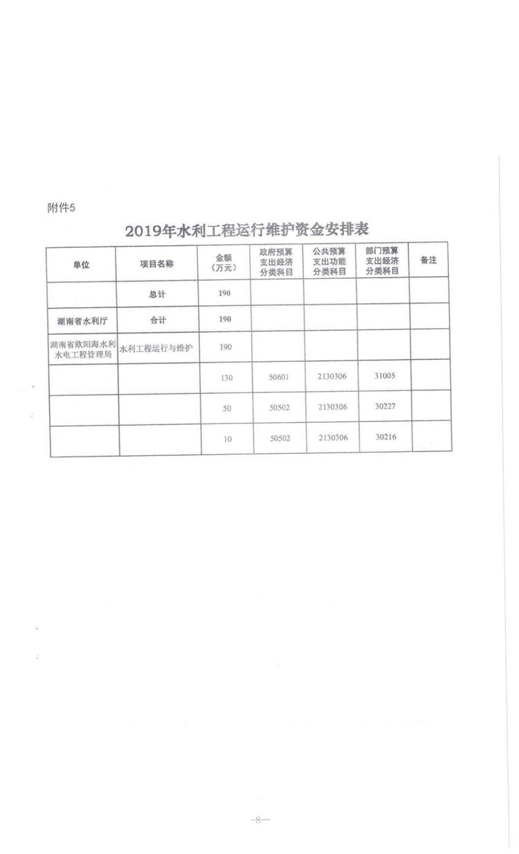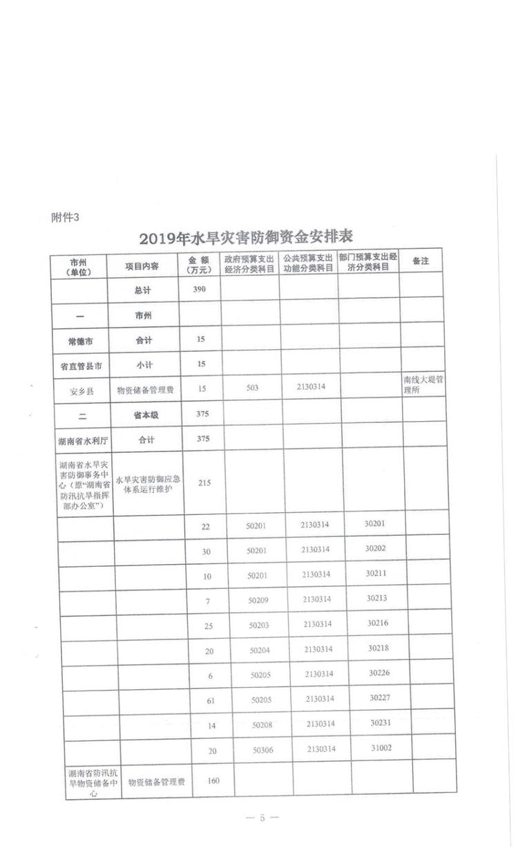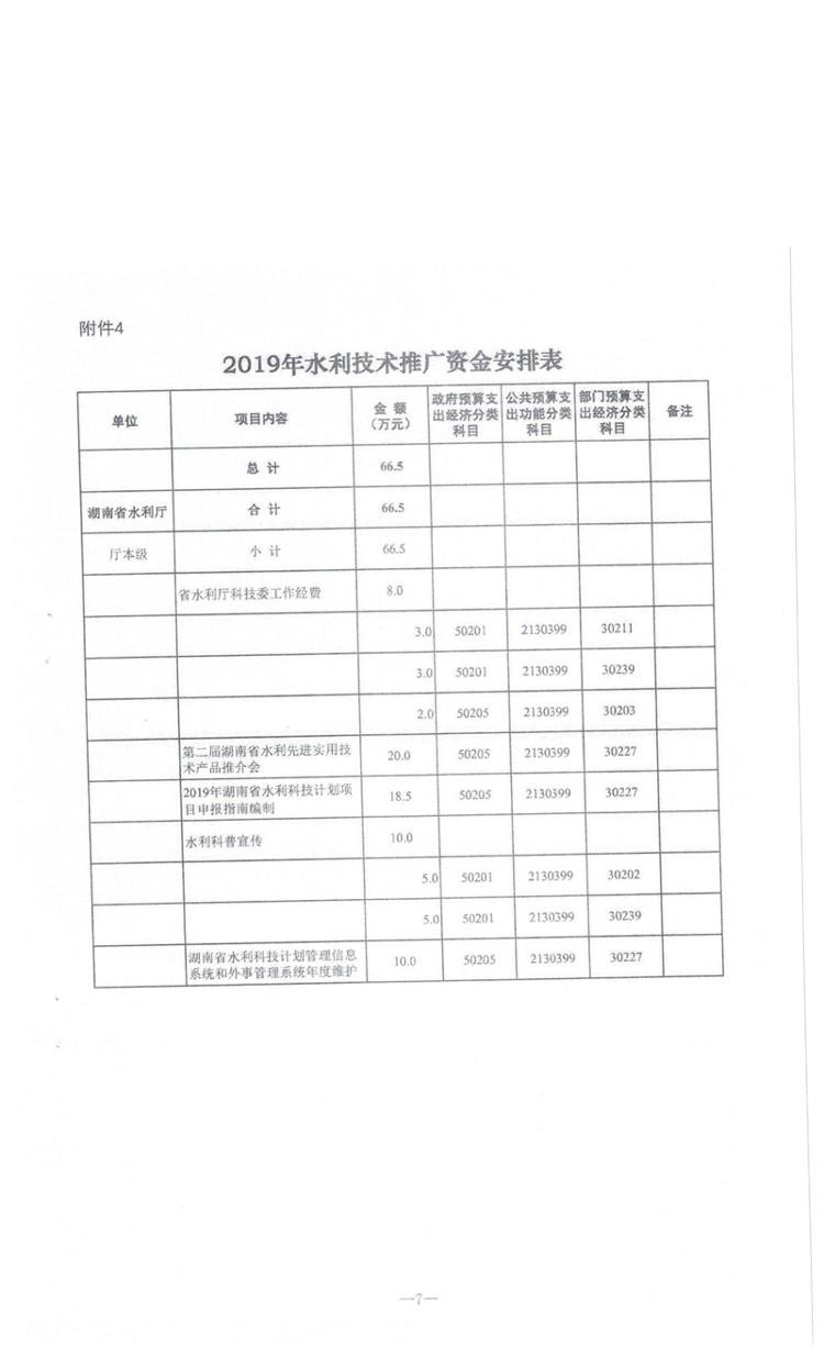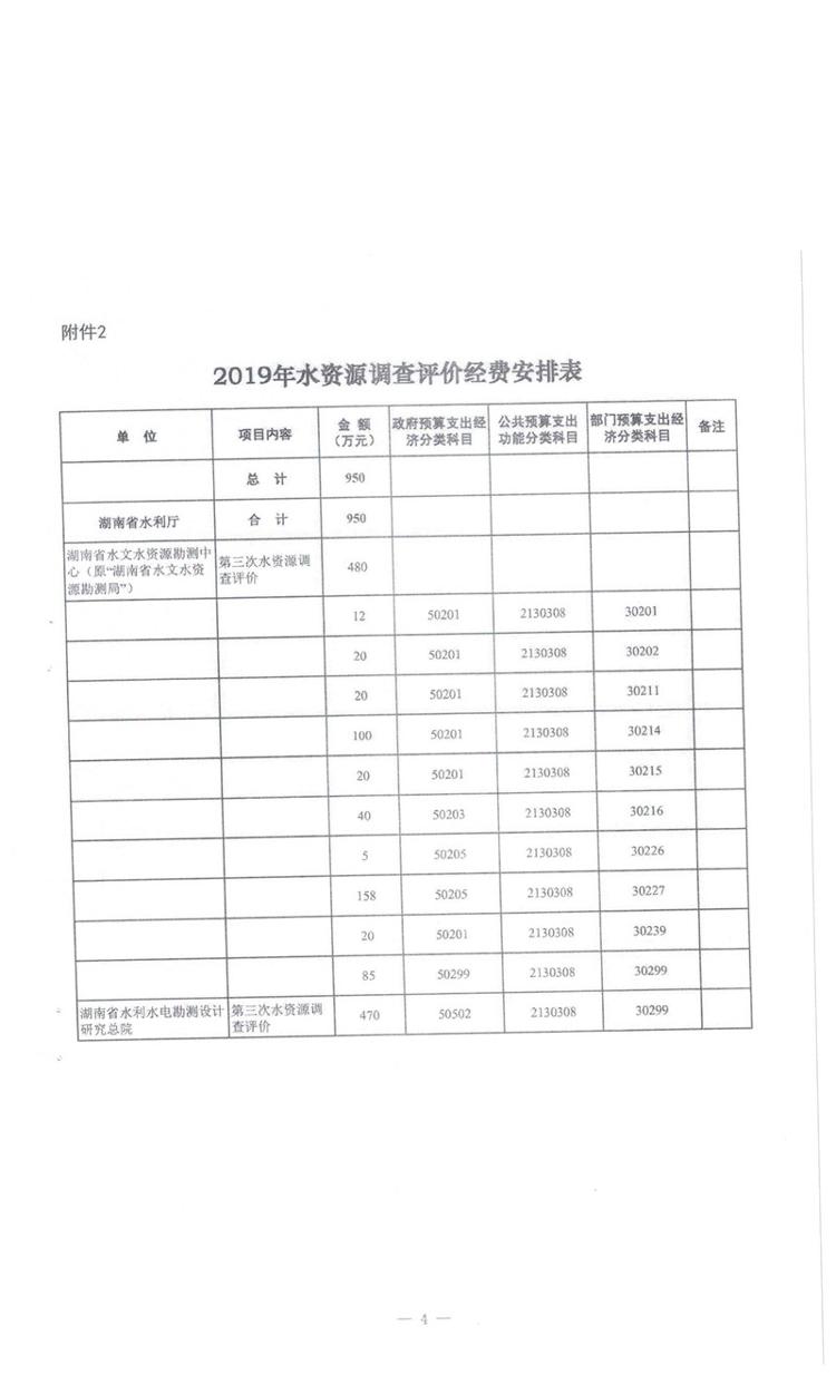 湖南省财政厅关于下达省水利厅2019年第二批部门预算资金的通知