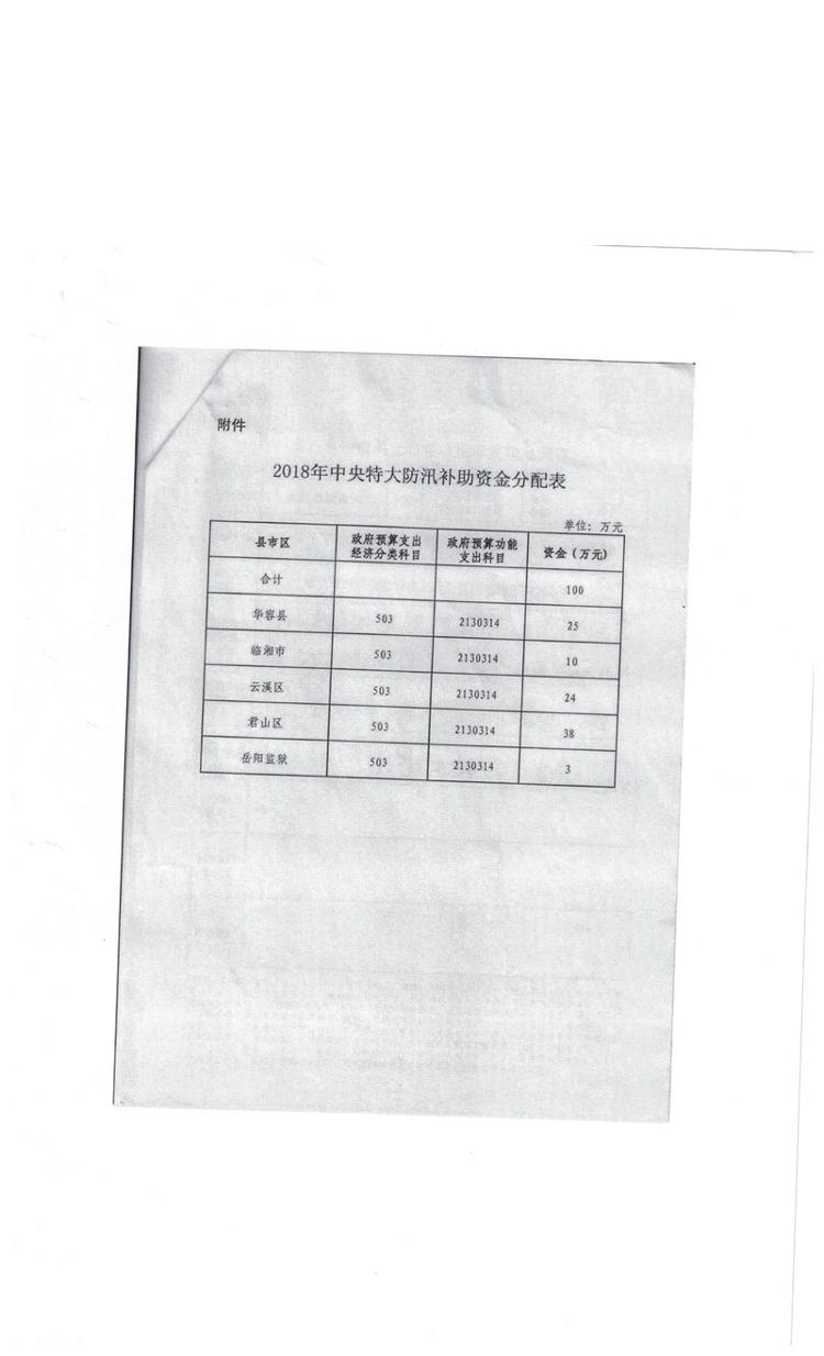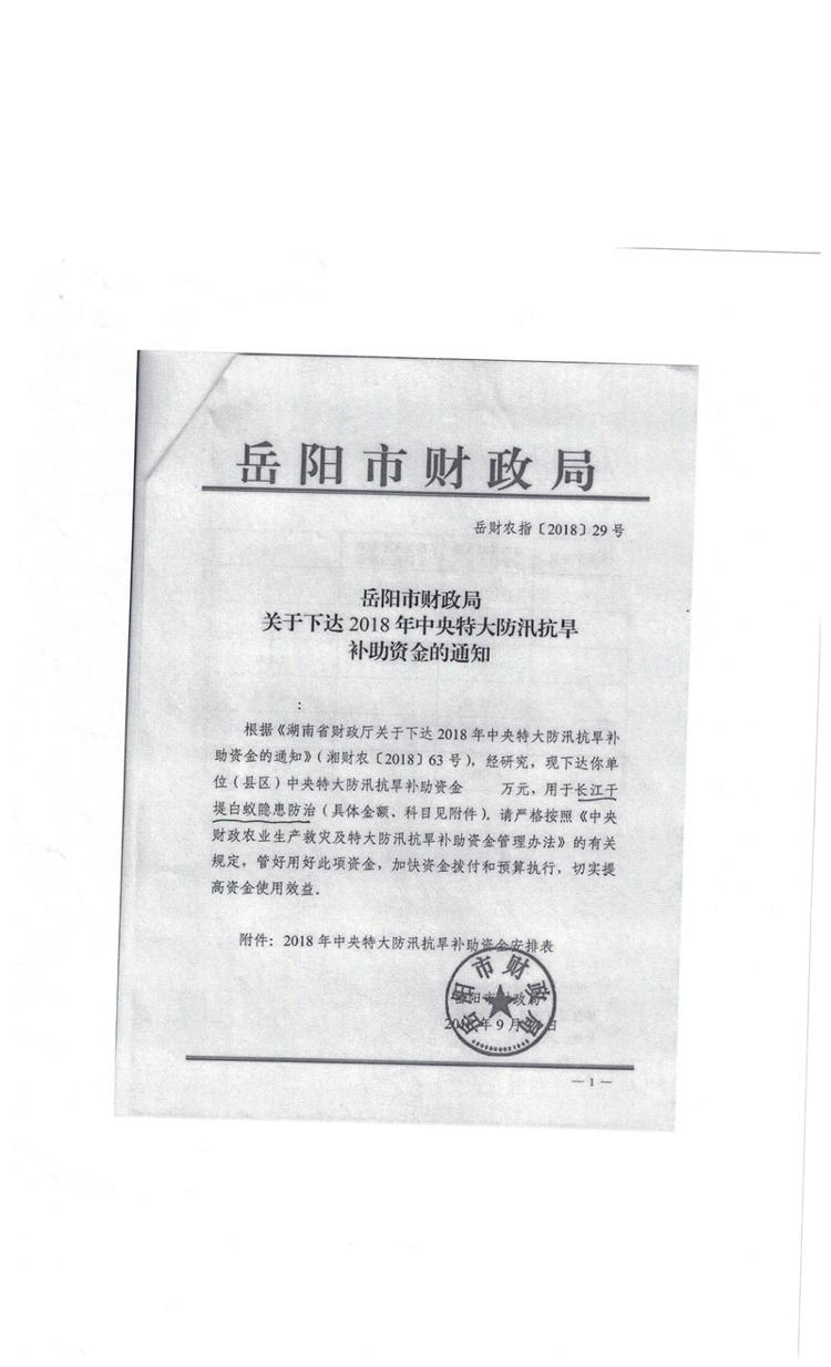 岳阳市财政局关于下达2018年中央特大防汛抗旱补助资金的通知