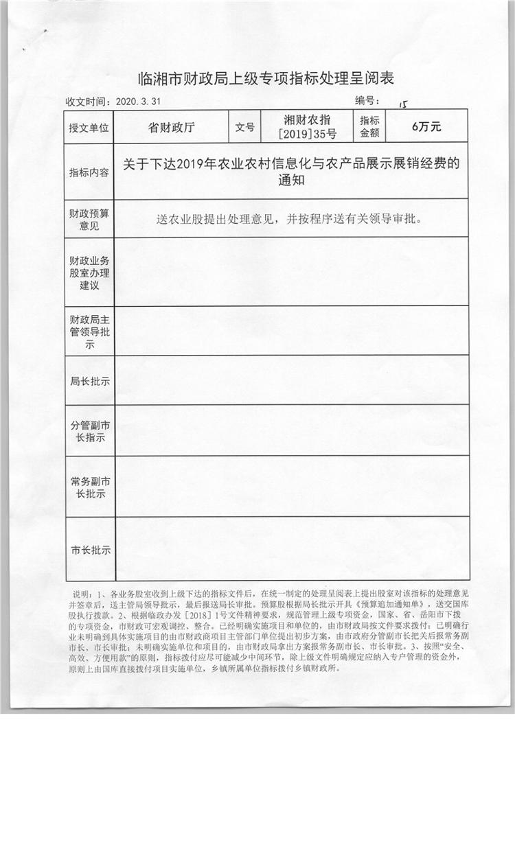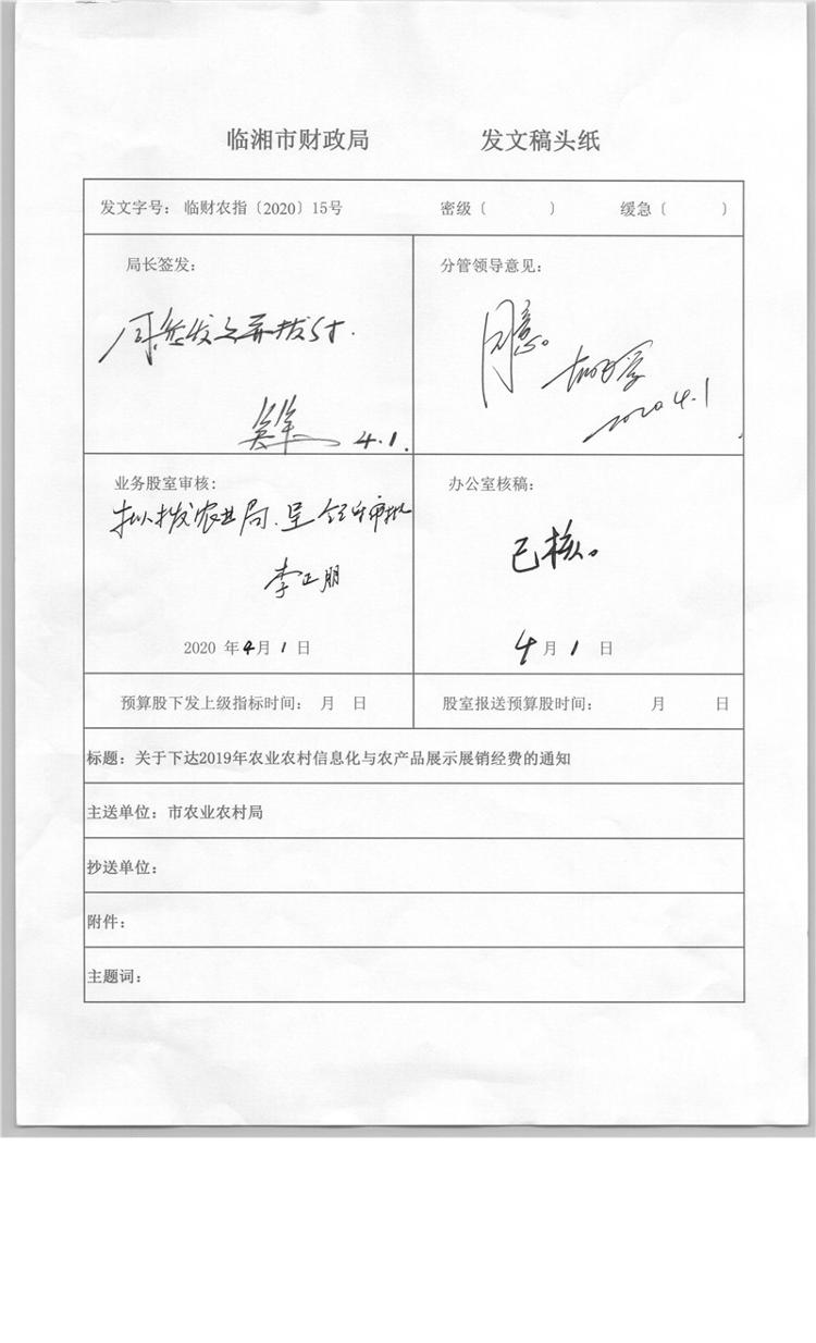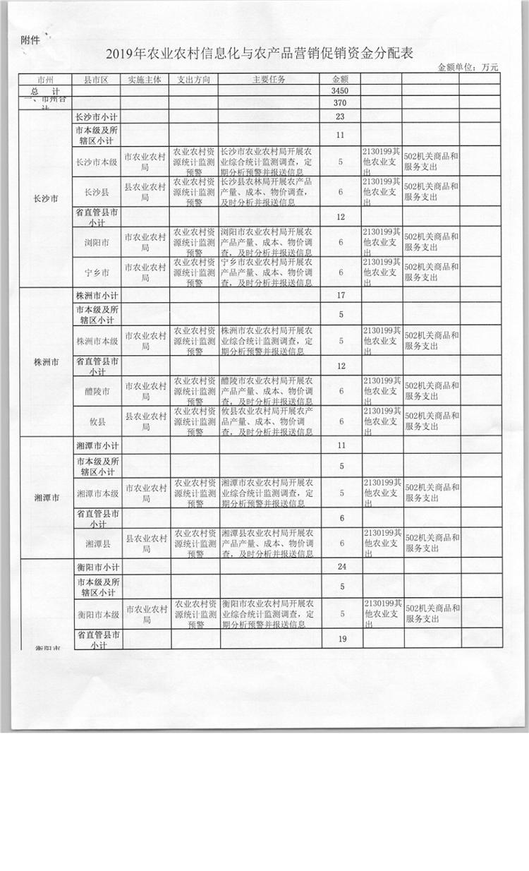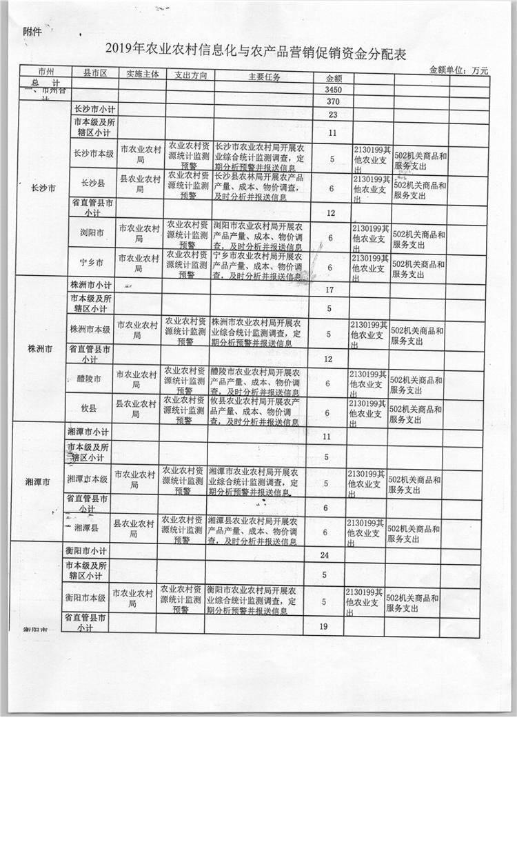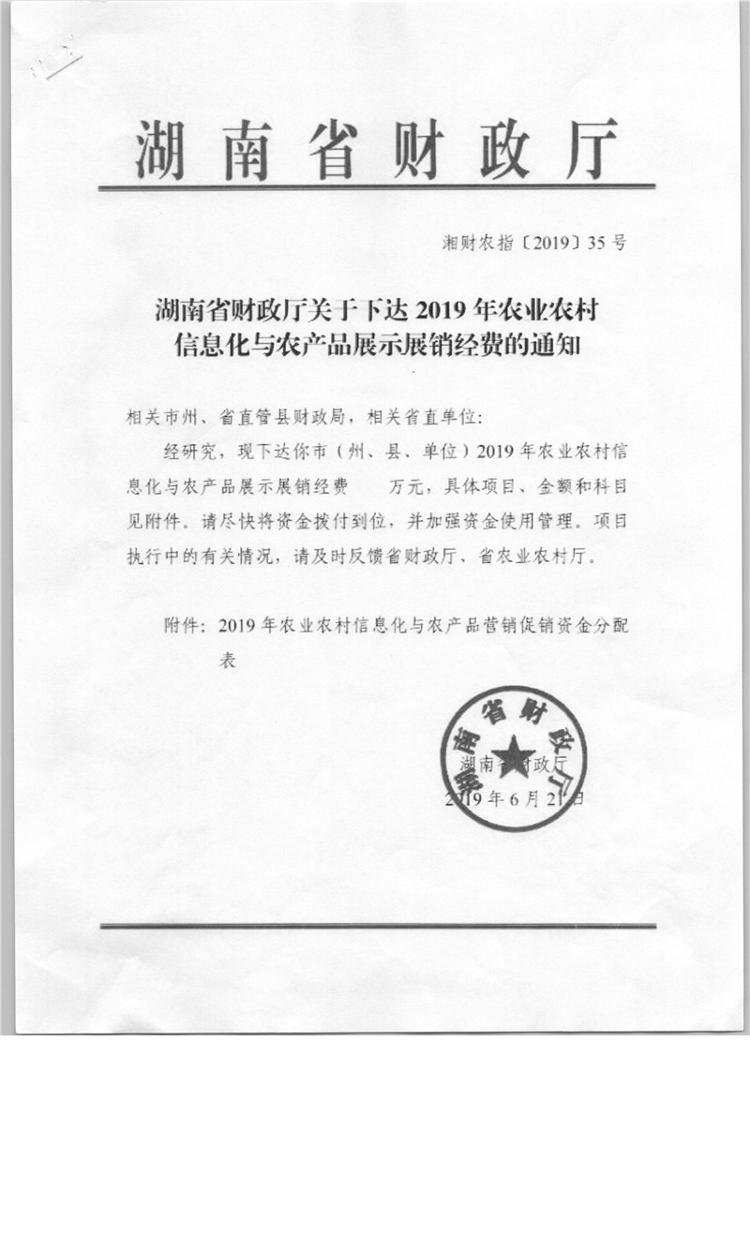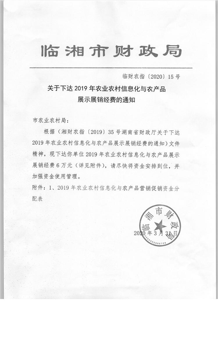 关于下达2019年农业农村信息化与农产品展示展销经费的通知