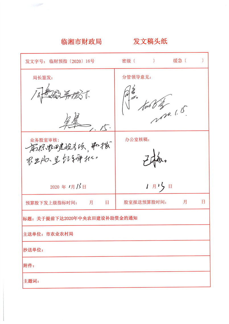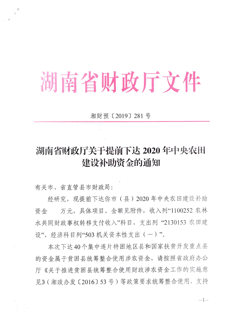 关于提前下达2020年中央农田建设补助资金的通知
