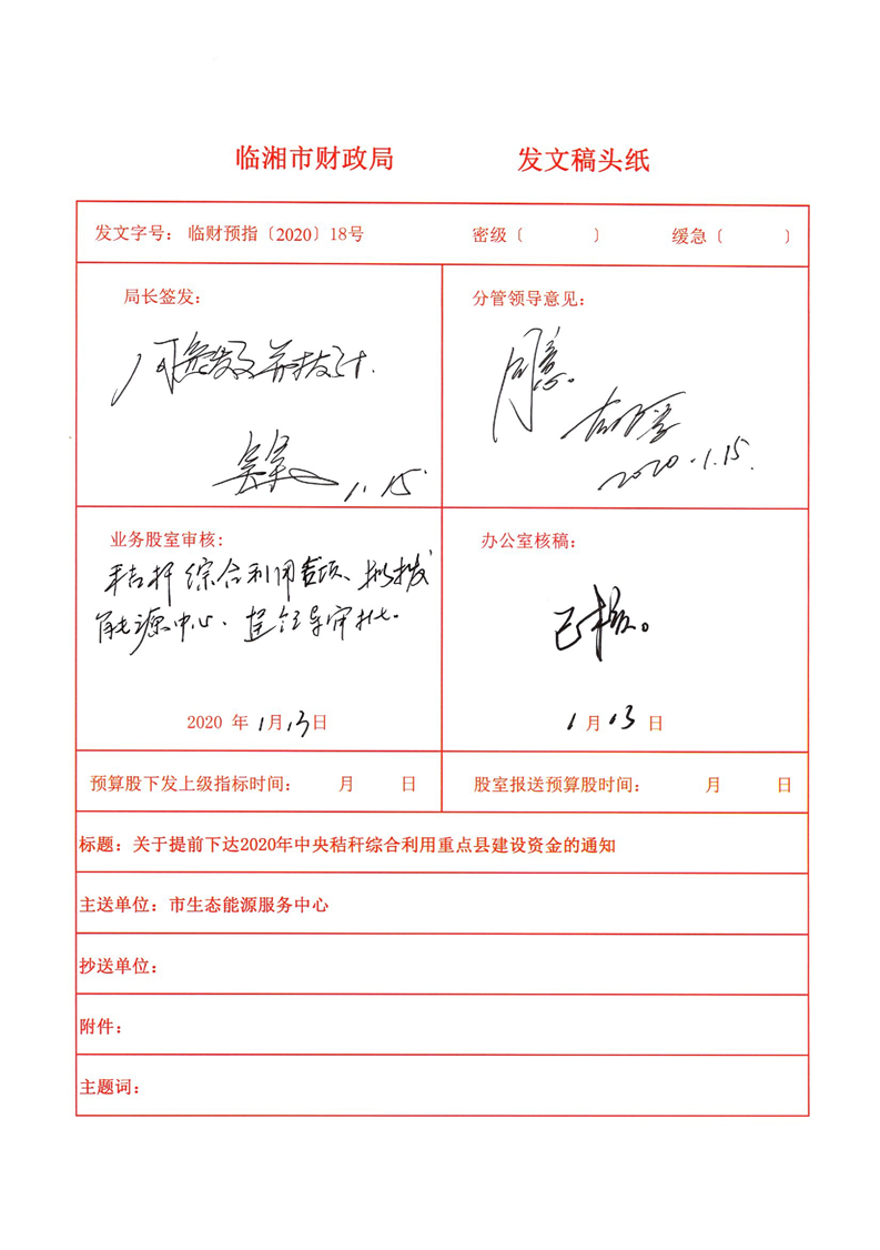 关于提前下达2020年中央秸秆综合利用重点县建设资金的通知
