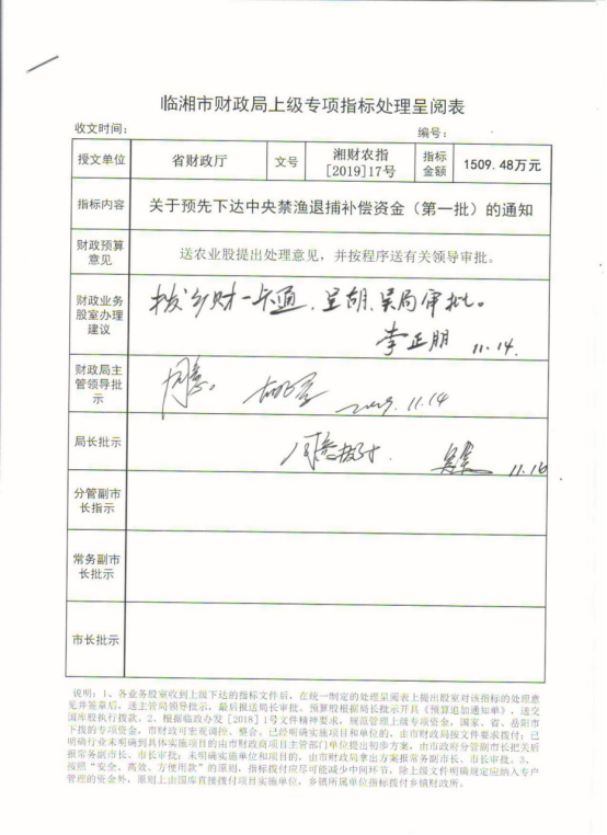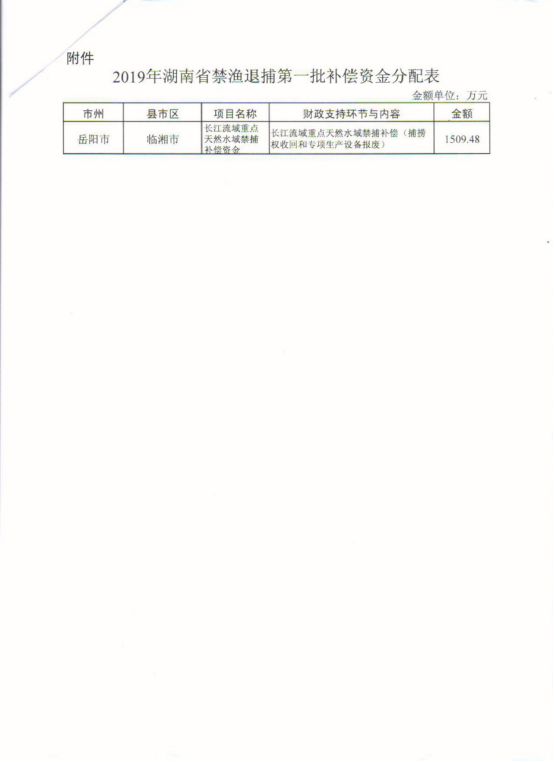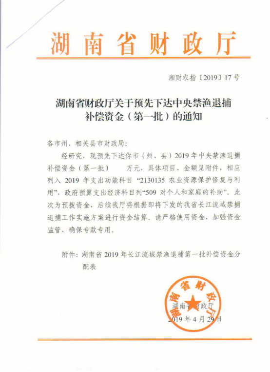 关于预先下达中央禁渔退捕补偿资金(第一批)的通知