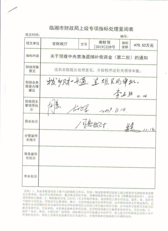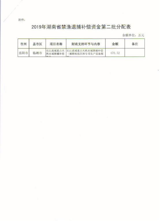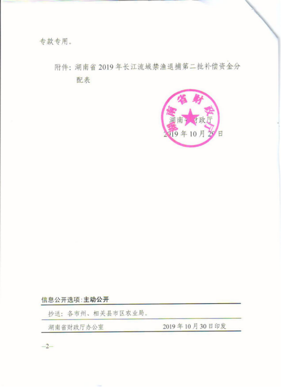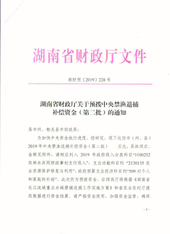 关于拨付中央禁渔退捕补偿资金(第二批)的通知