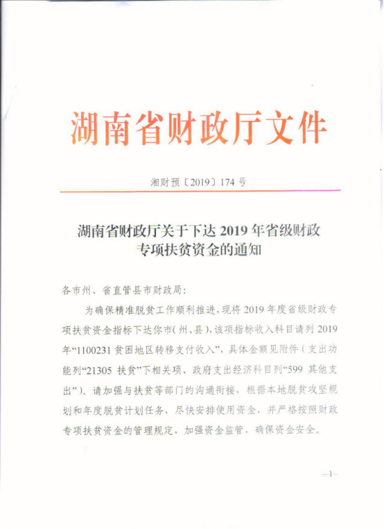 关于下达2019年省级财政专项扶贫资金的通知