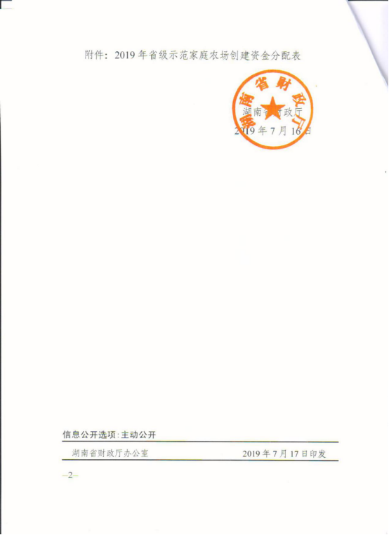关于下达中央2019年省级示范家庭农场创建资金的通知