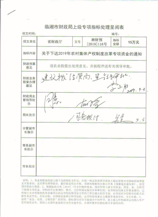 湖南省财政厅关于下达2019年农村集体产权制度改革专项资金的通知