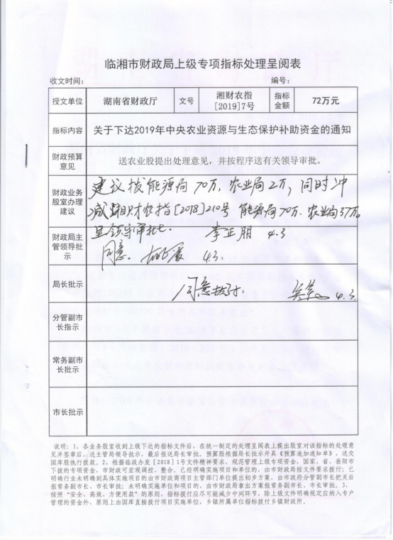 湖南省财政厅关于下达2019年中央农业资源与生态保护补助资金的通知