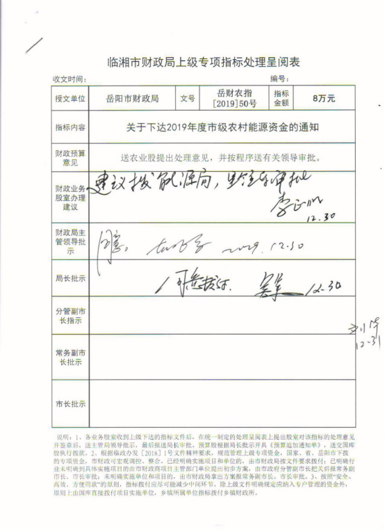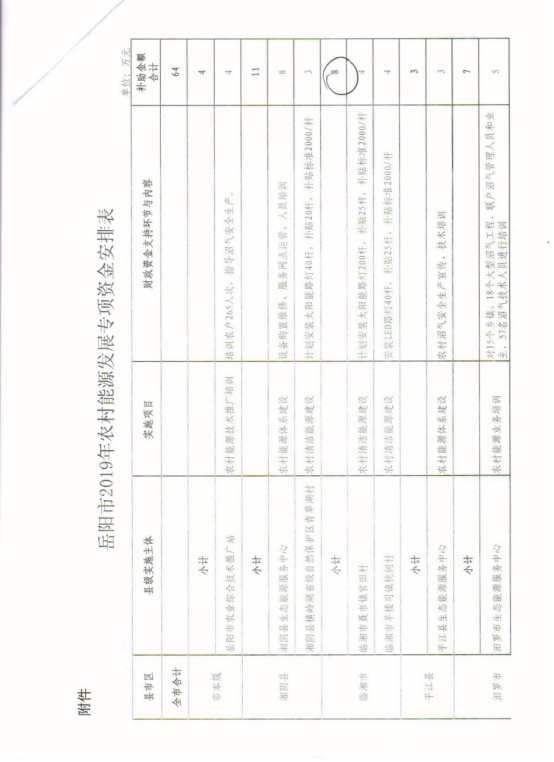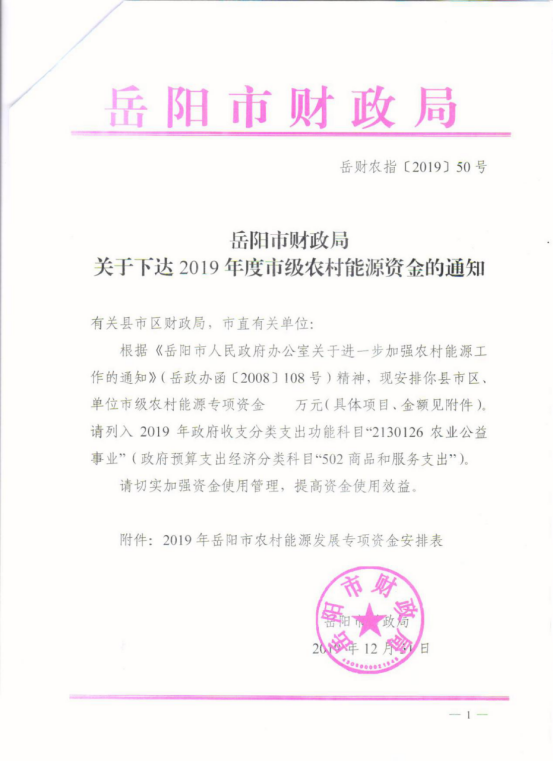 岳阳市财政局关于下达2019年度市级农村能源资金的通知