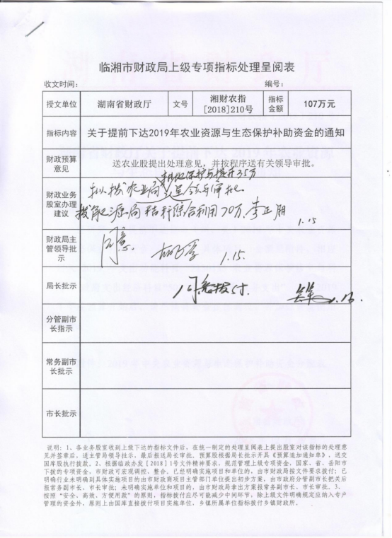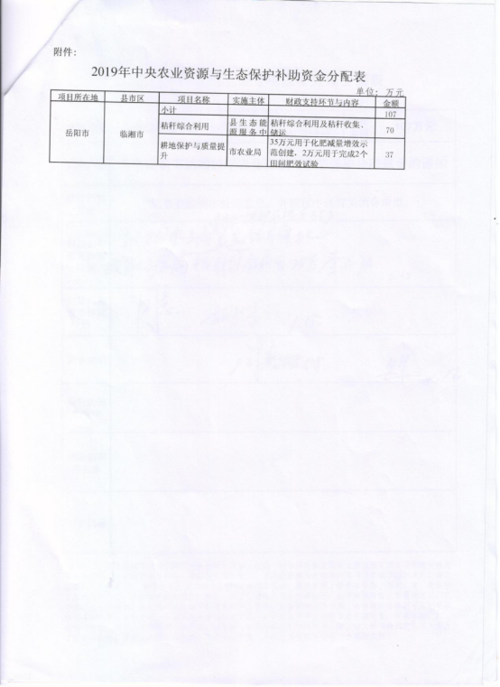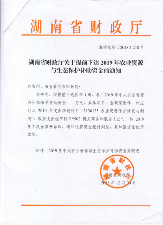 湖南省财政厅关于提前下达2019年农业资源与生态保护补助资金的通知