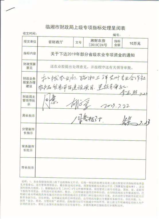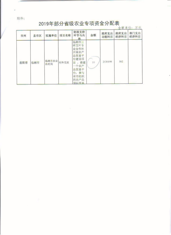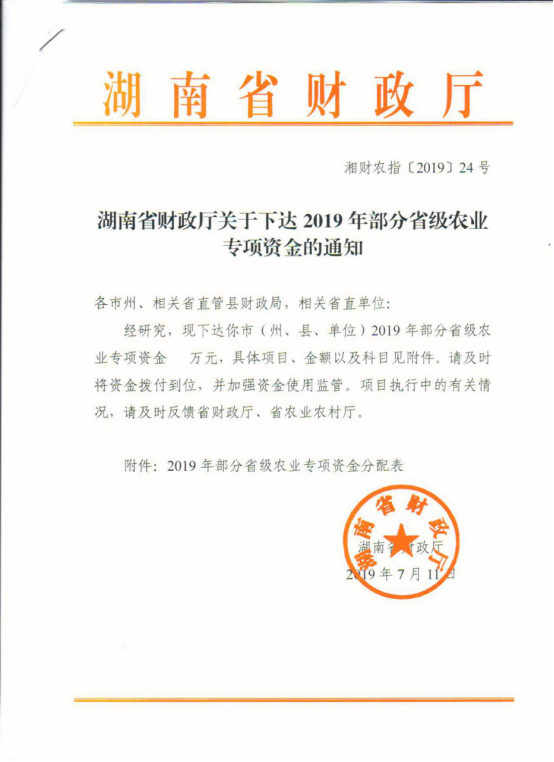 湖南省财政厅关于下达2019年部分省级农业专项资金的通知
