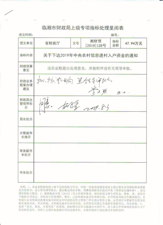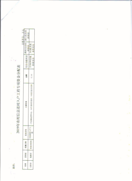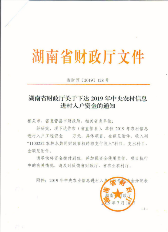 湖南省财政厅关于下达2019年中央农村信息进村入户资金的通知