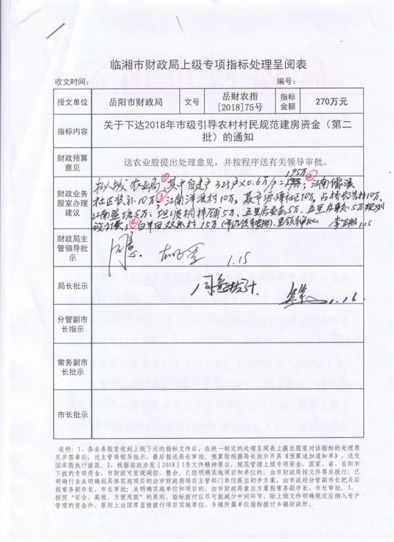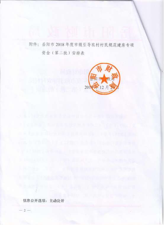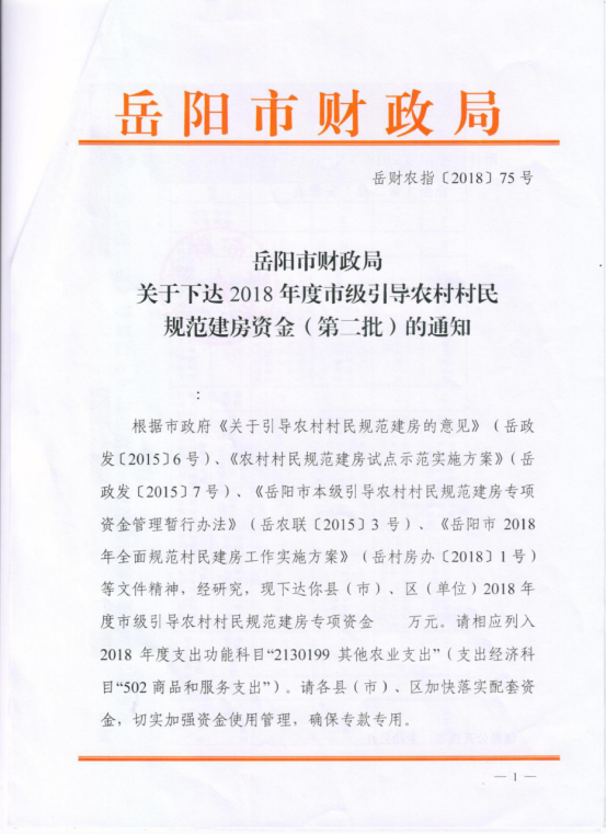 岳阳市财政局关于下达2018年度市级引导农村村民规范建房资金(第二批)的通知