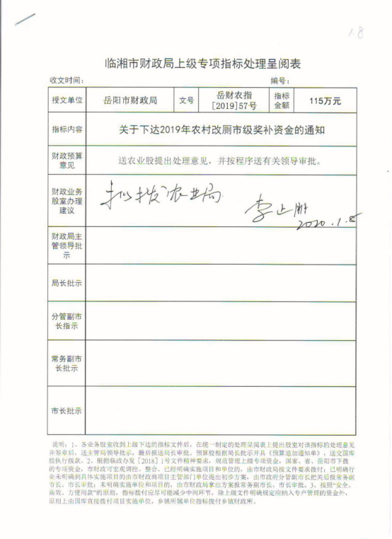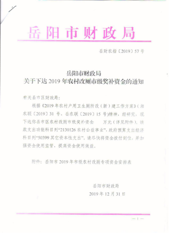 岳阳市财政局关于下达2019年农村改厕市级奖补资金的通知