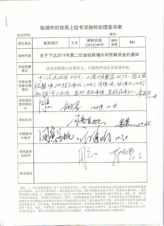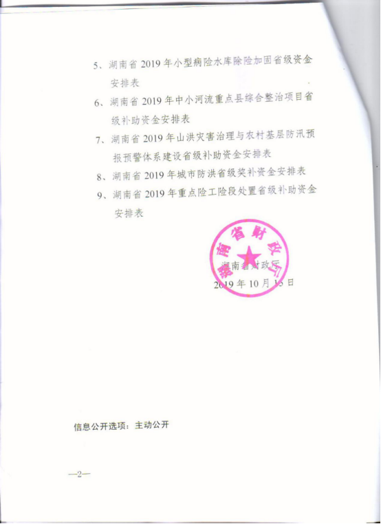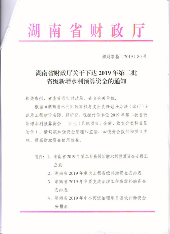 湖南省财政厅关于下达2019年第二批省级新增水利预算资金的通知