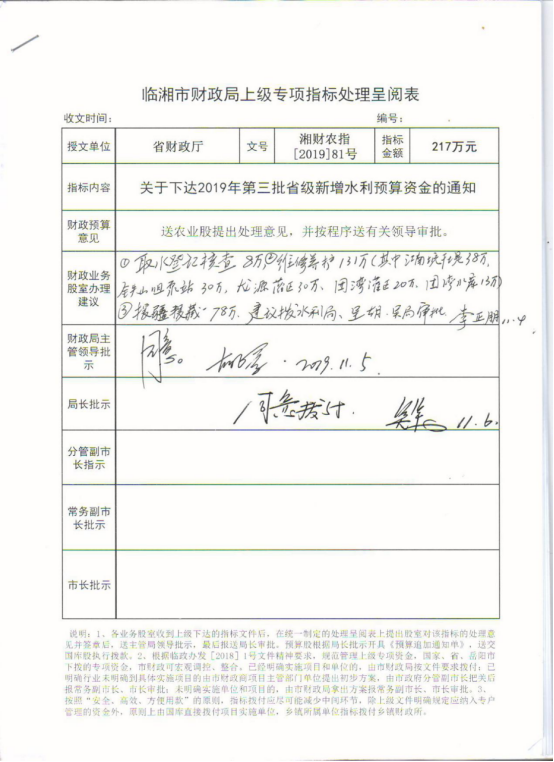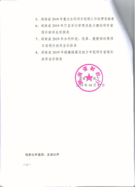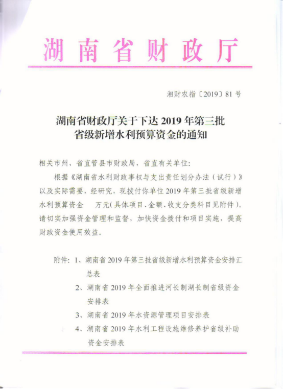 湖南省财政厅关于下达2019年第三批省级新增水利预算资金的通知