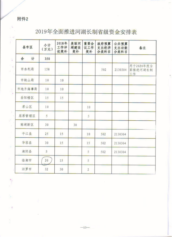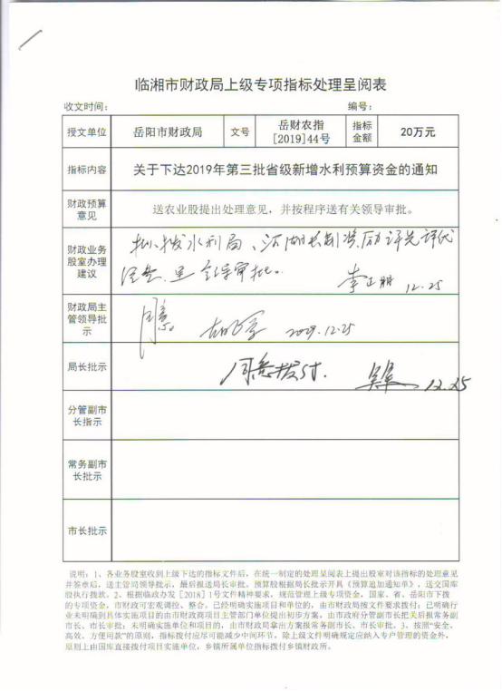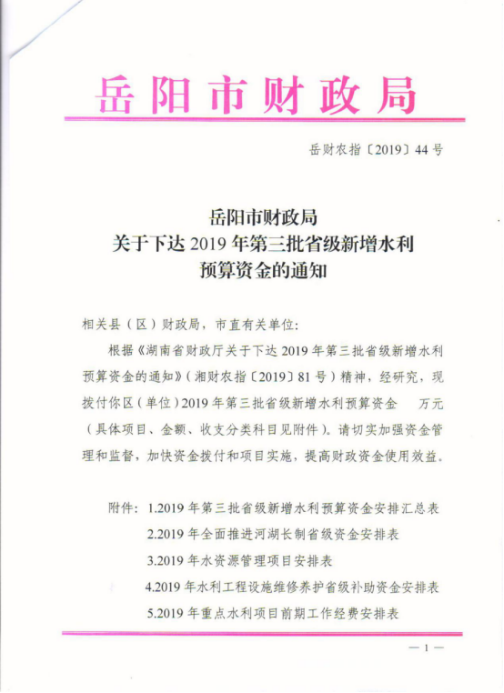 岳阳市财政局关于下达2019年第三批省级新增水利预算资金的通知