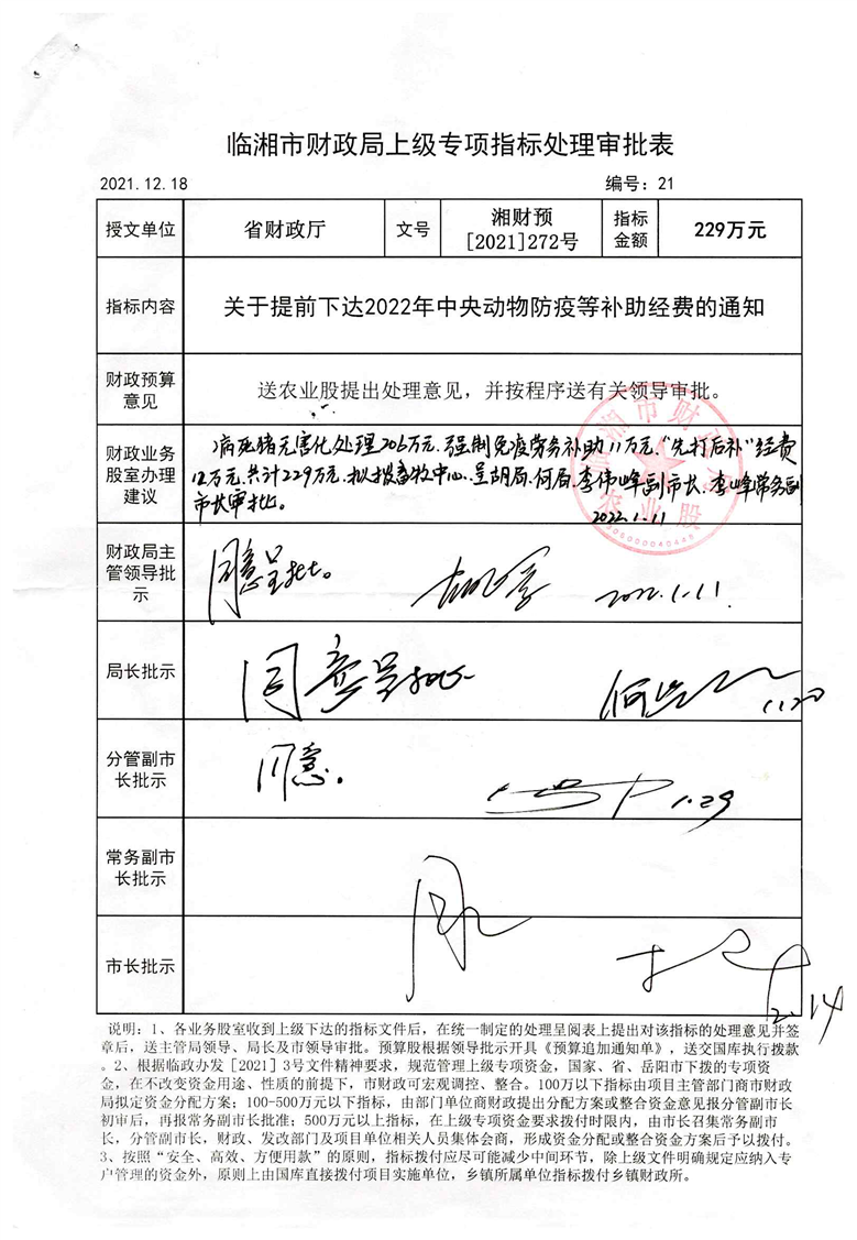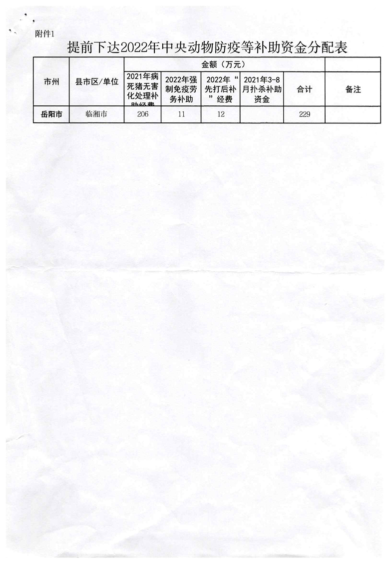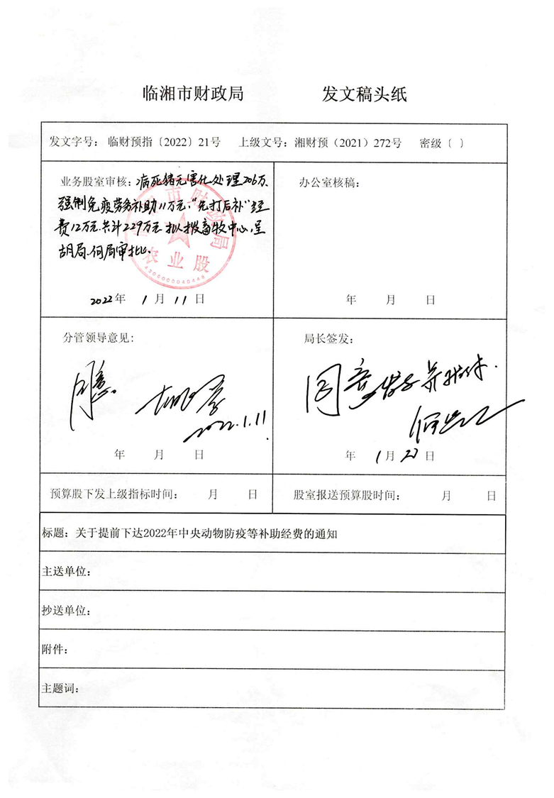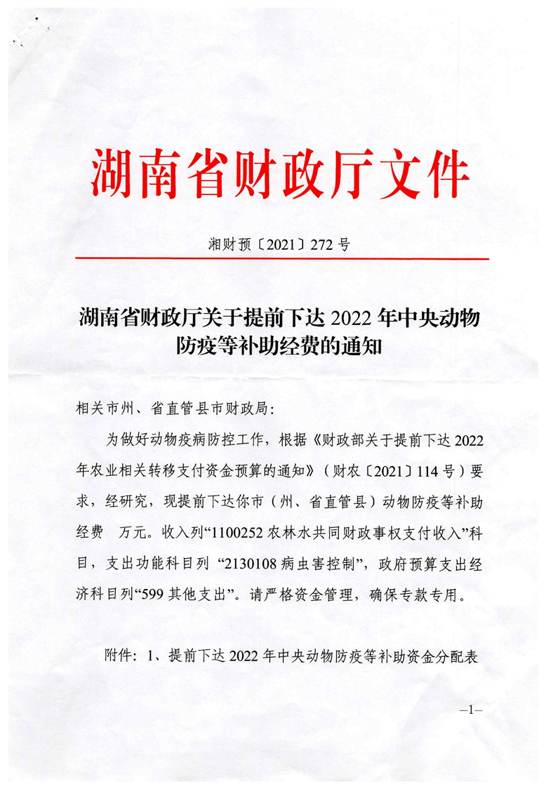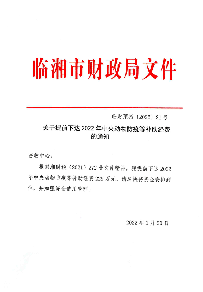 关于提前下达2022年中央动物防疫等补助经费的通知