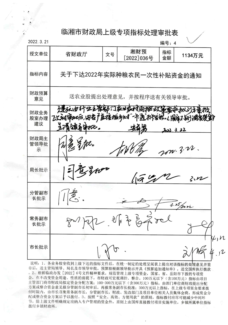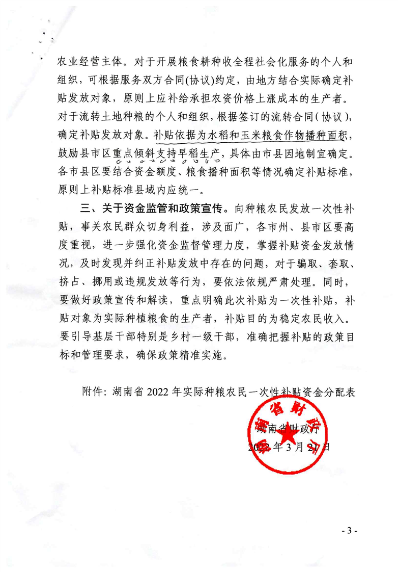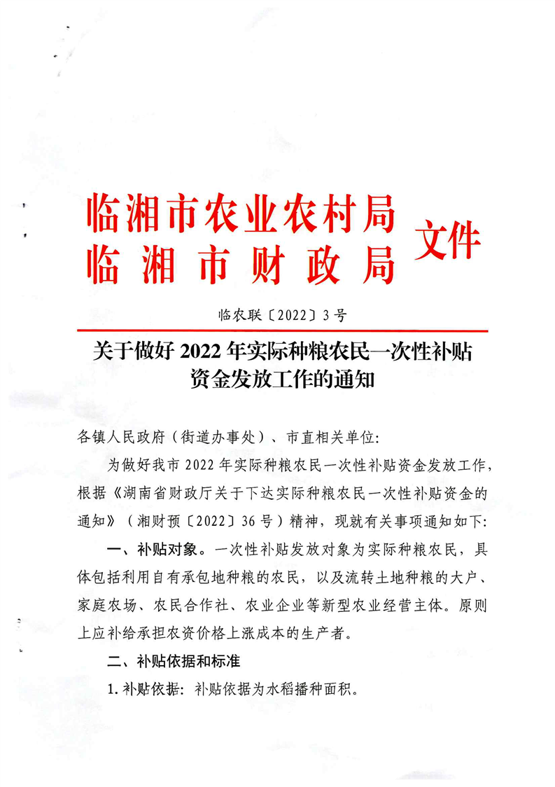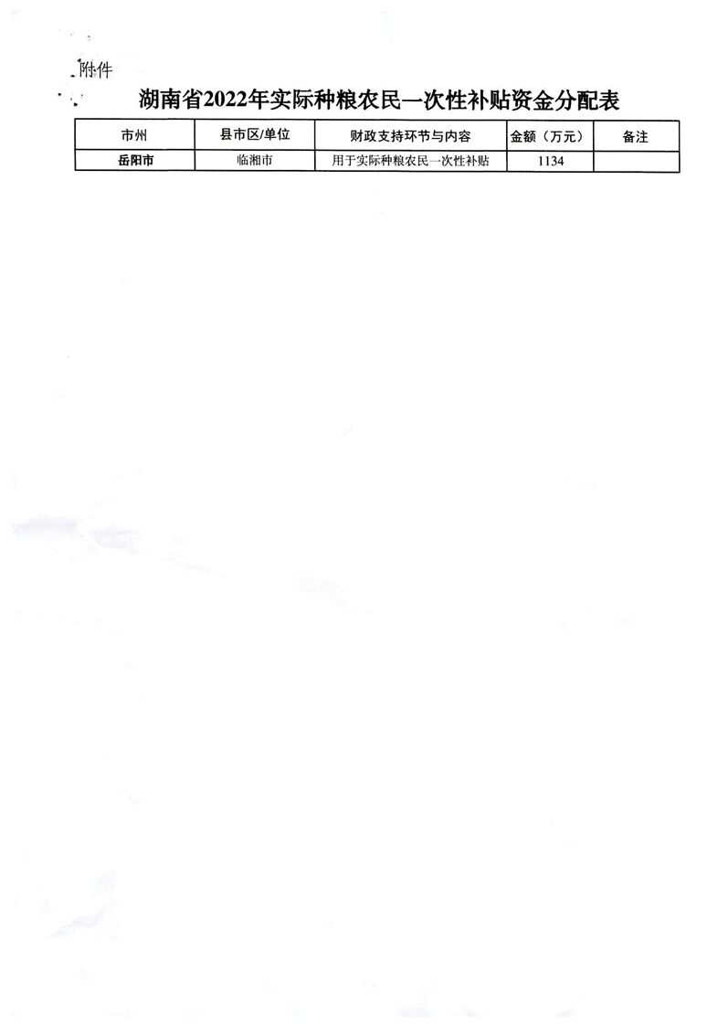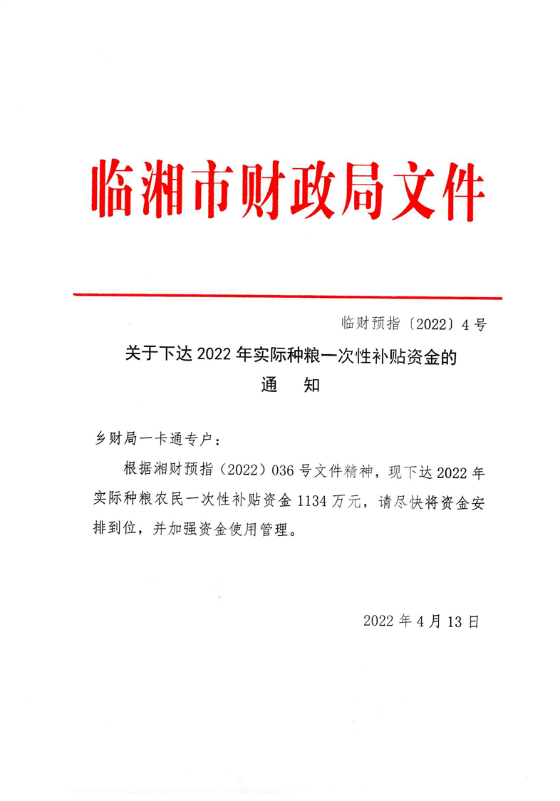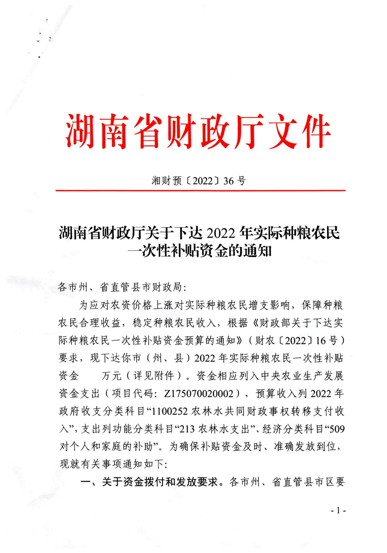 关于下达2022年实际种粮农民一次性补助资金的通知