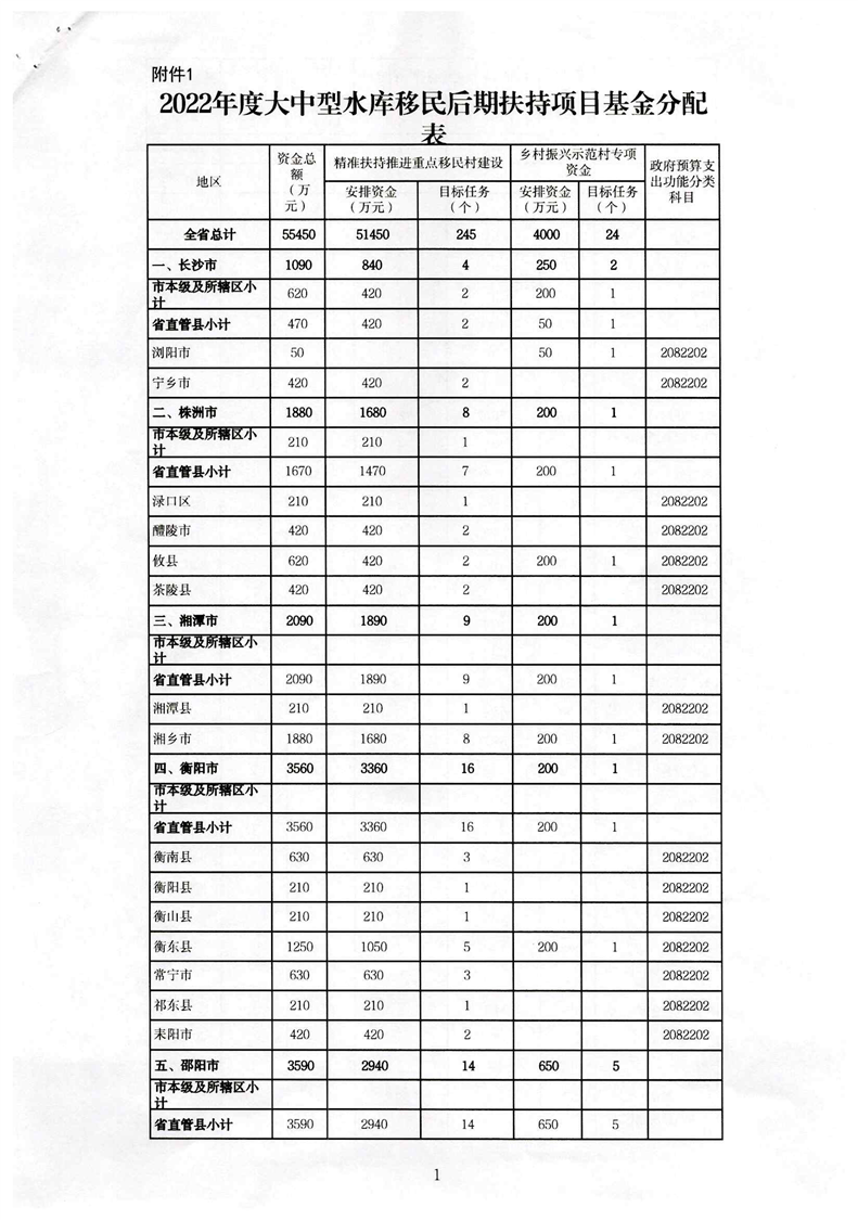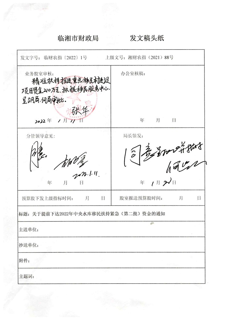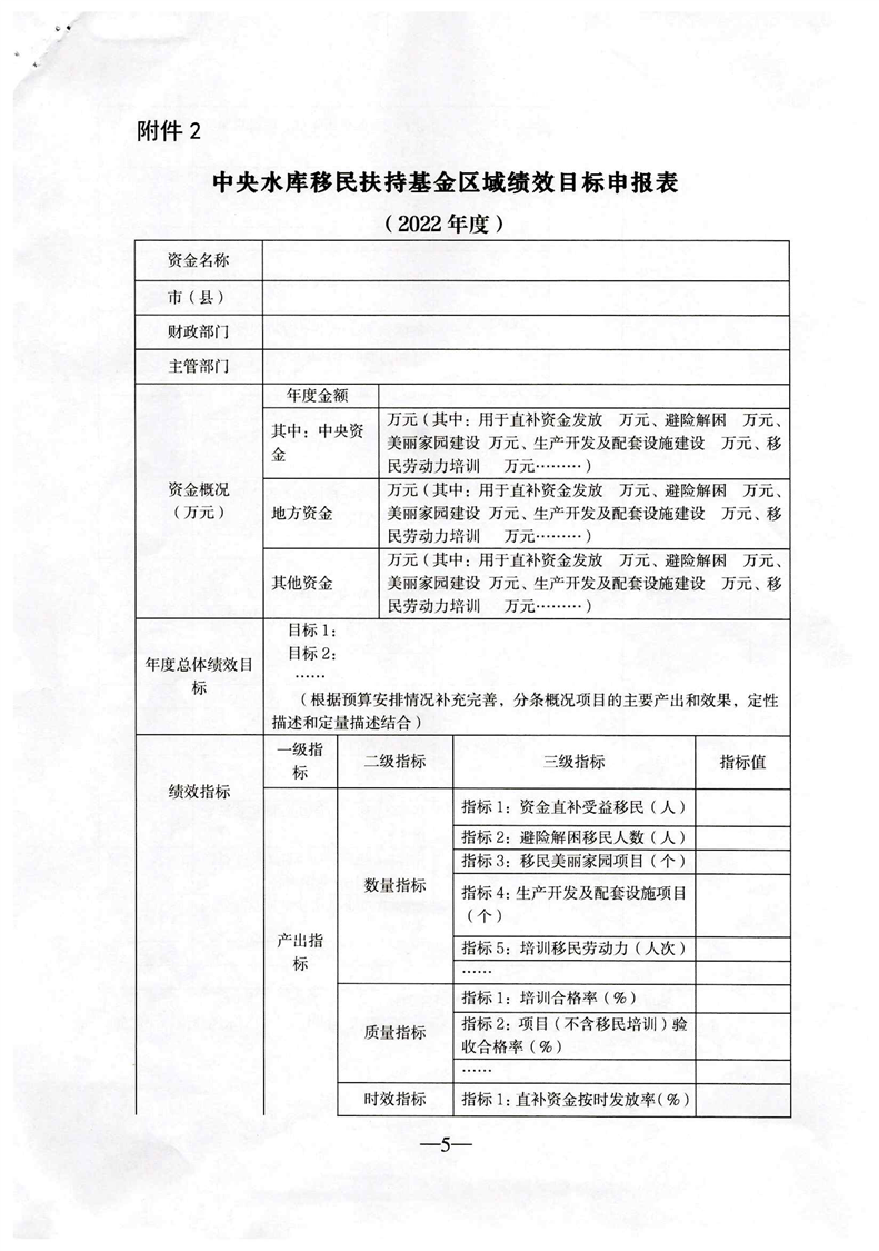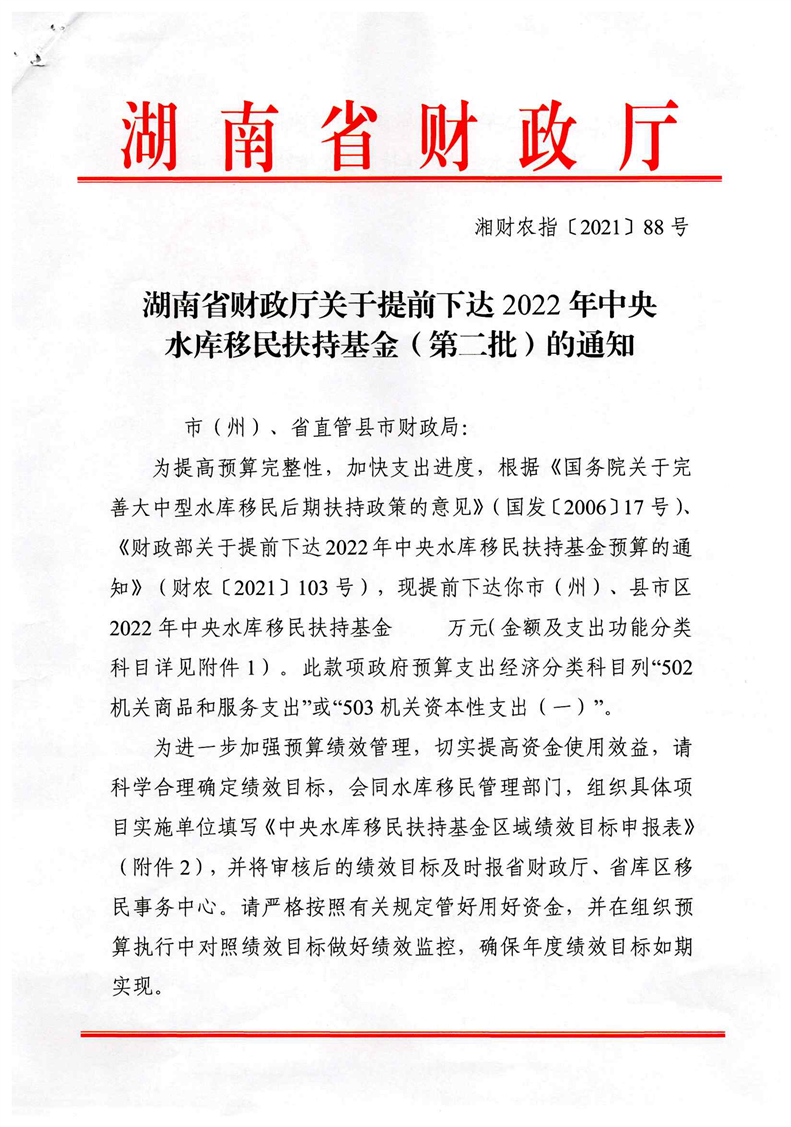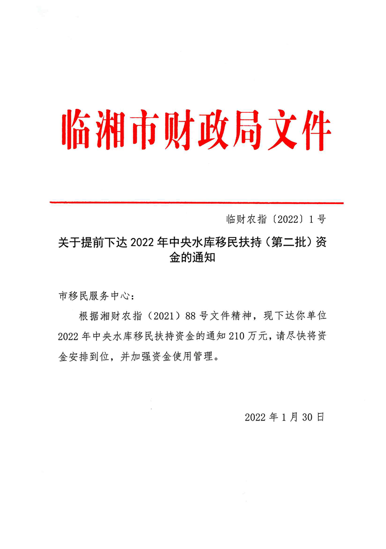 关于提前下达2022年中央水库移民扶持资金(第二批)的通知