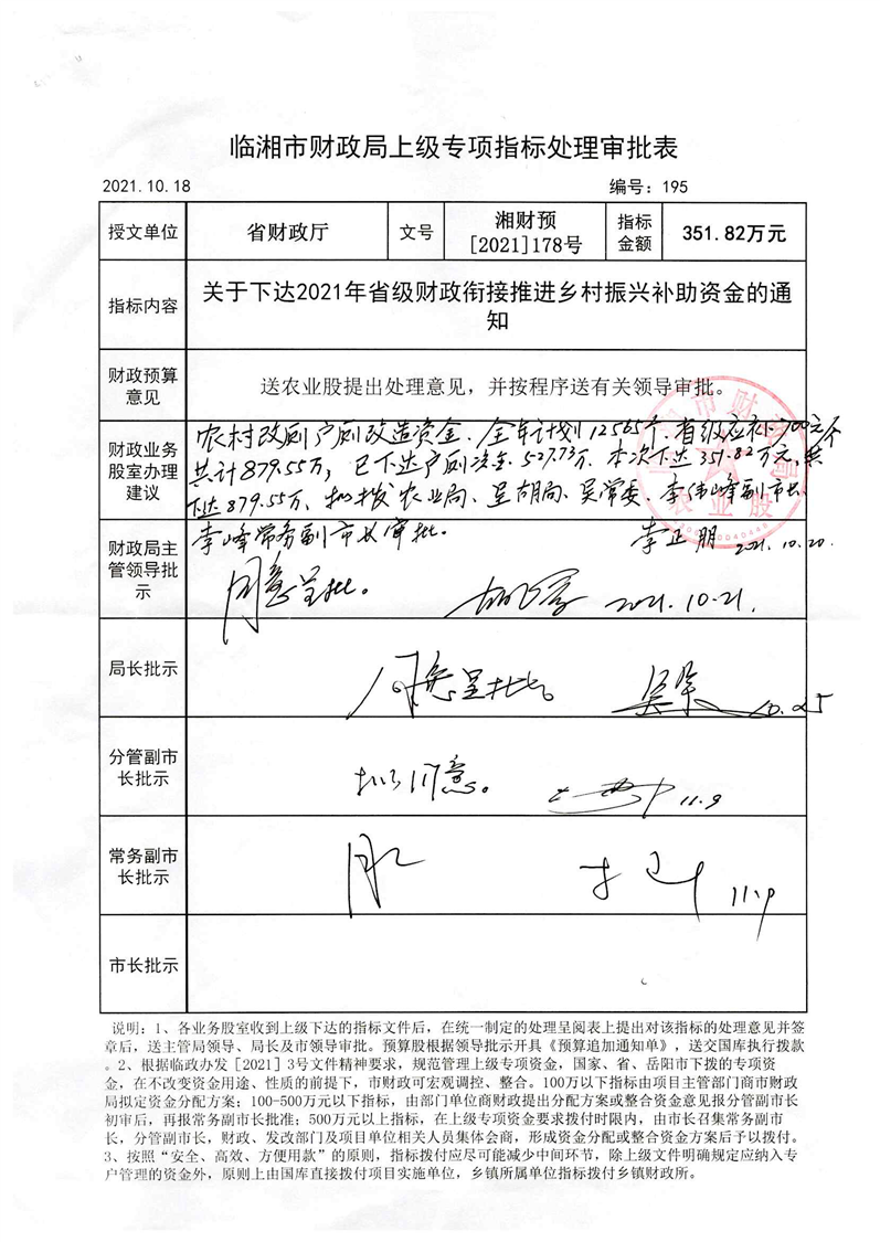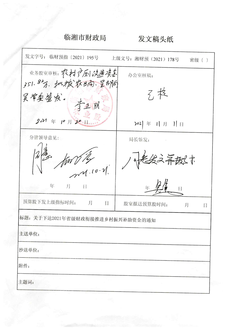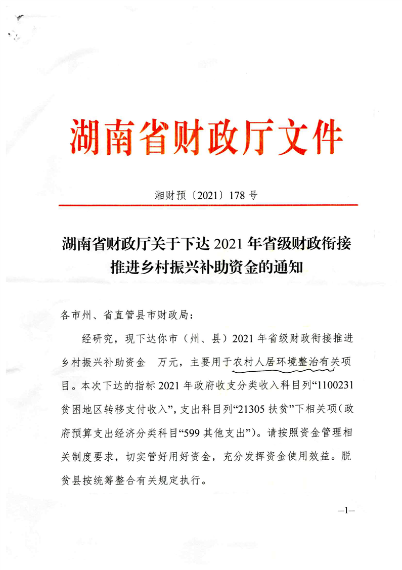 湖南省财政厅关于下达2021年省级财政衔接推进乡村振兴补助资金的通知