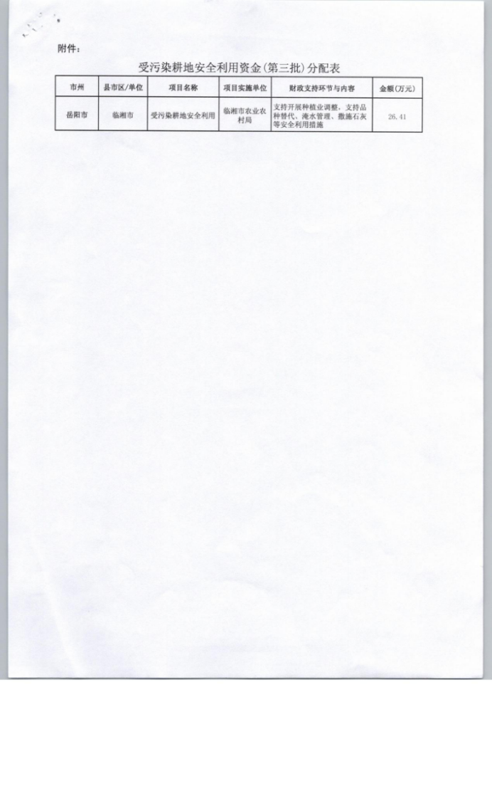 关于下达受污染耕地安全利用资金(第三批)的通知