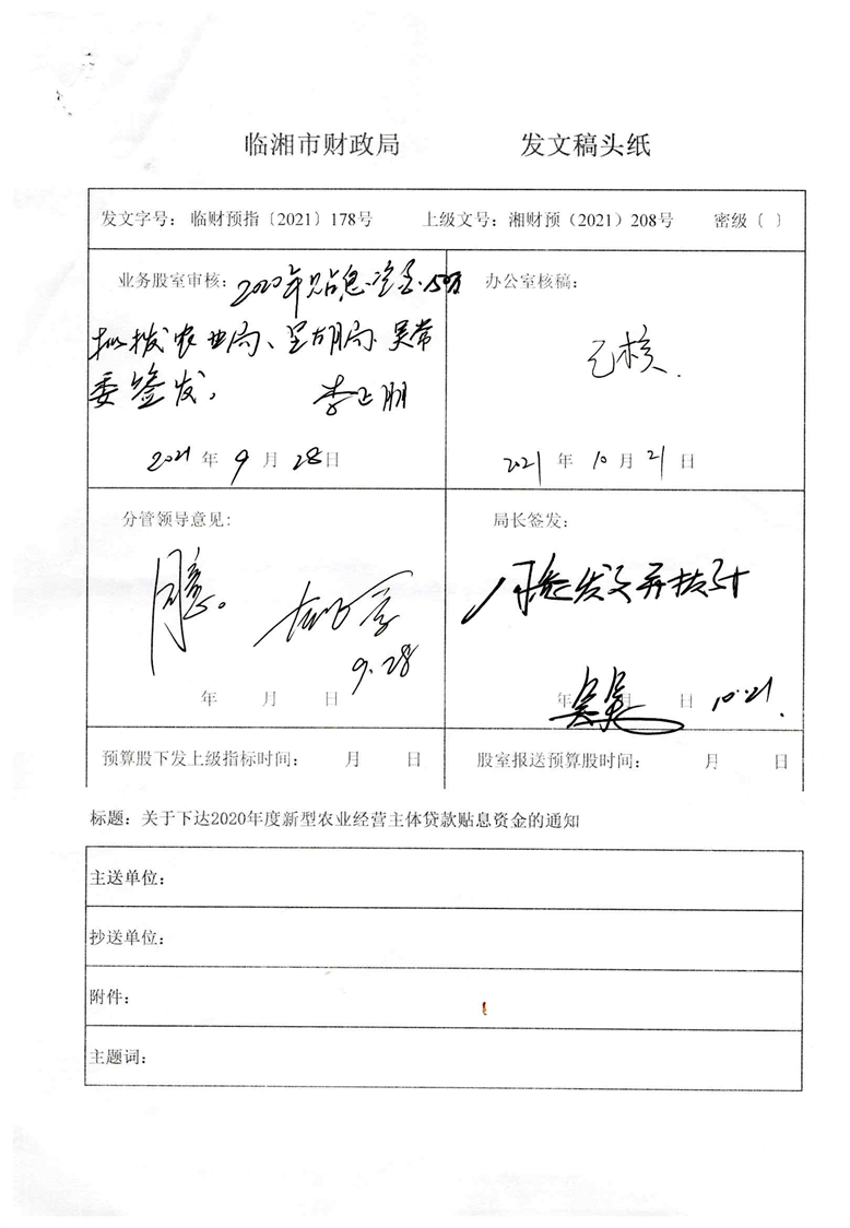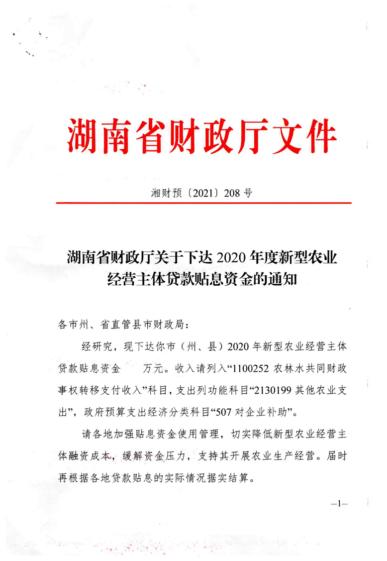 关于下2020年度新型农业经营主体贷款贴息资金的通知