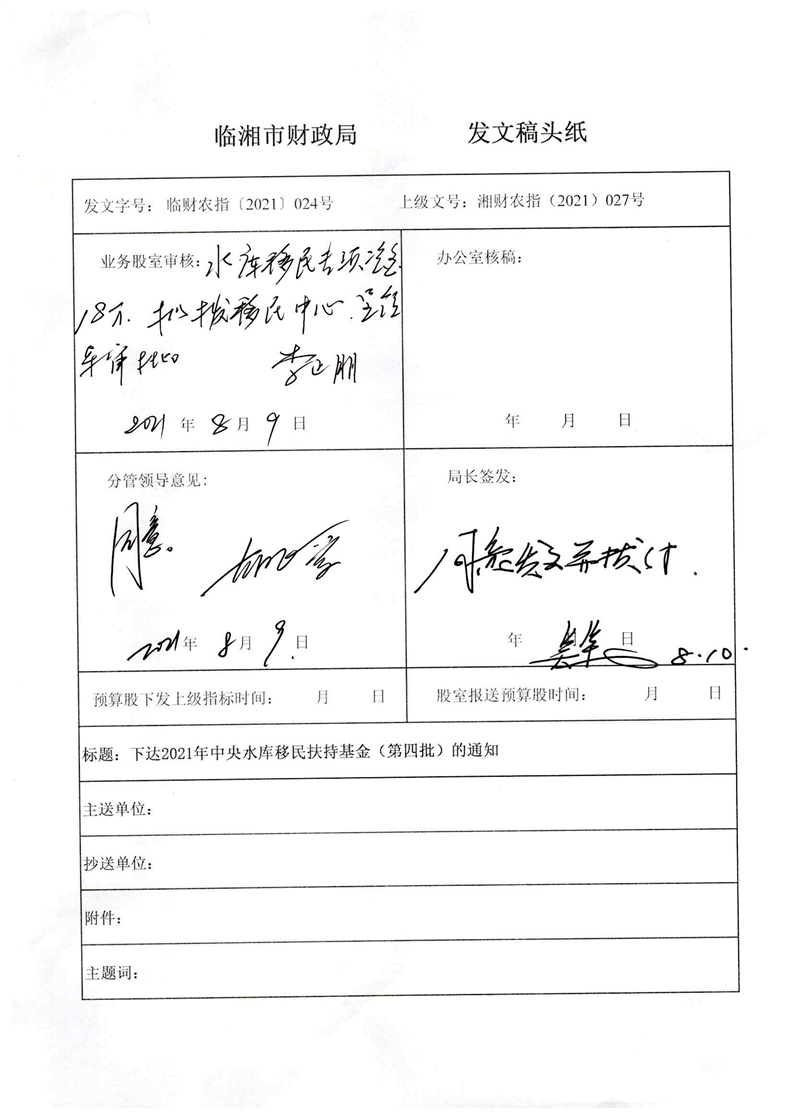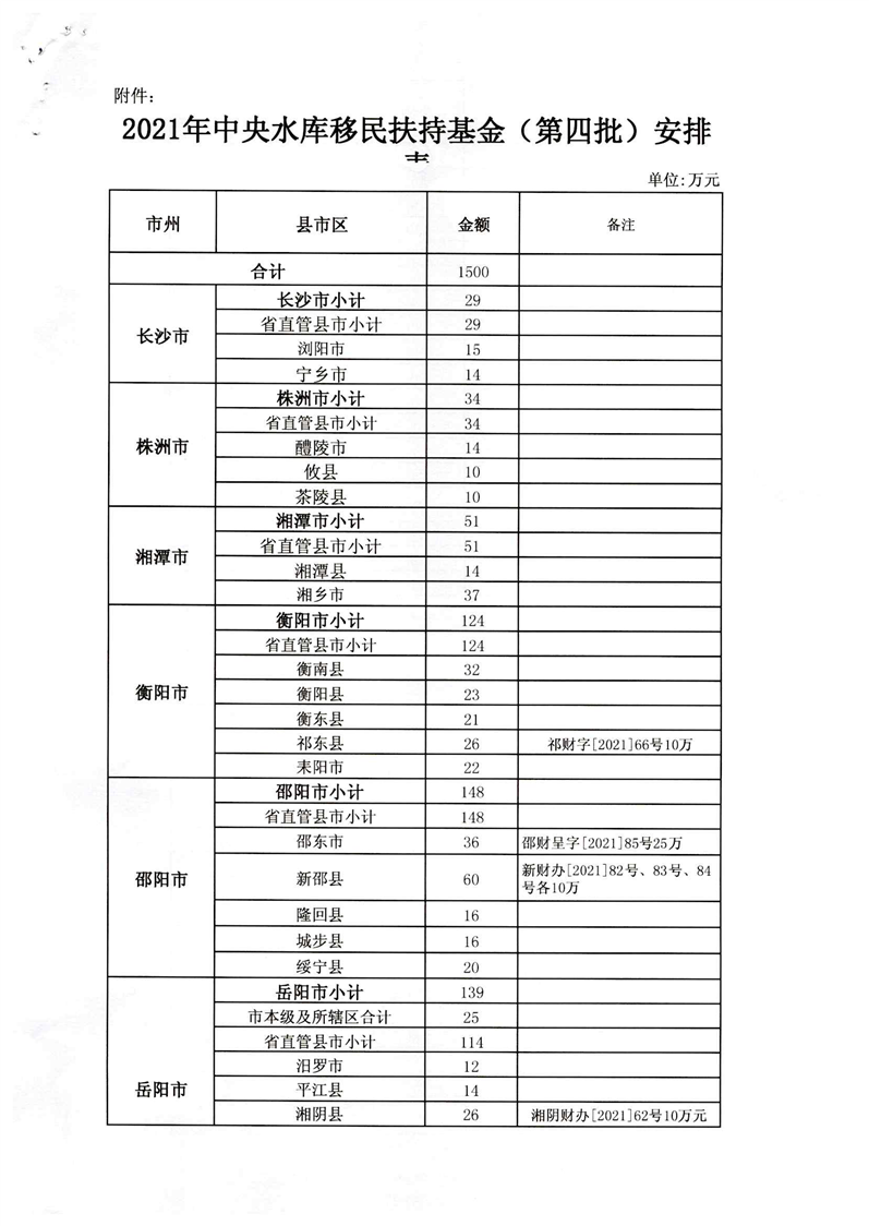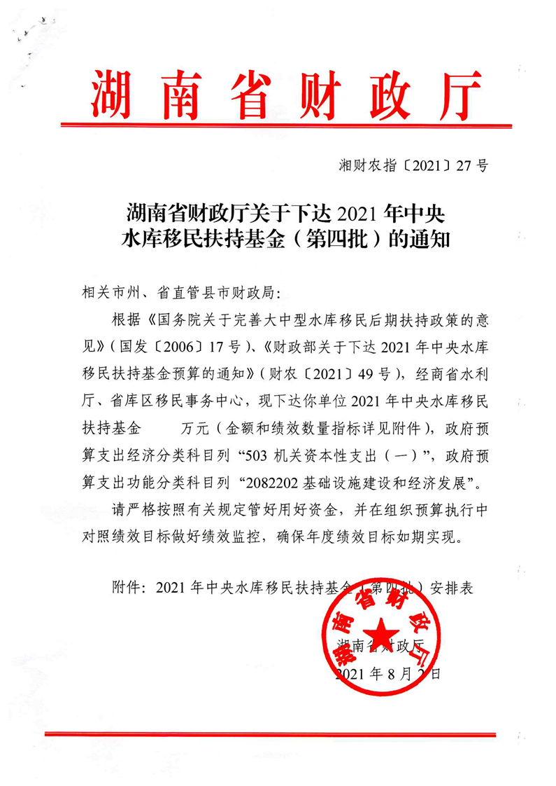 关于下达2021年中央水库移民扶持基金(第四批)的通知